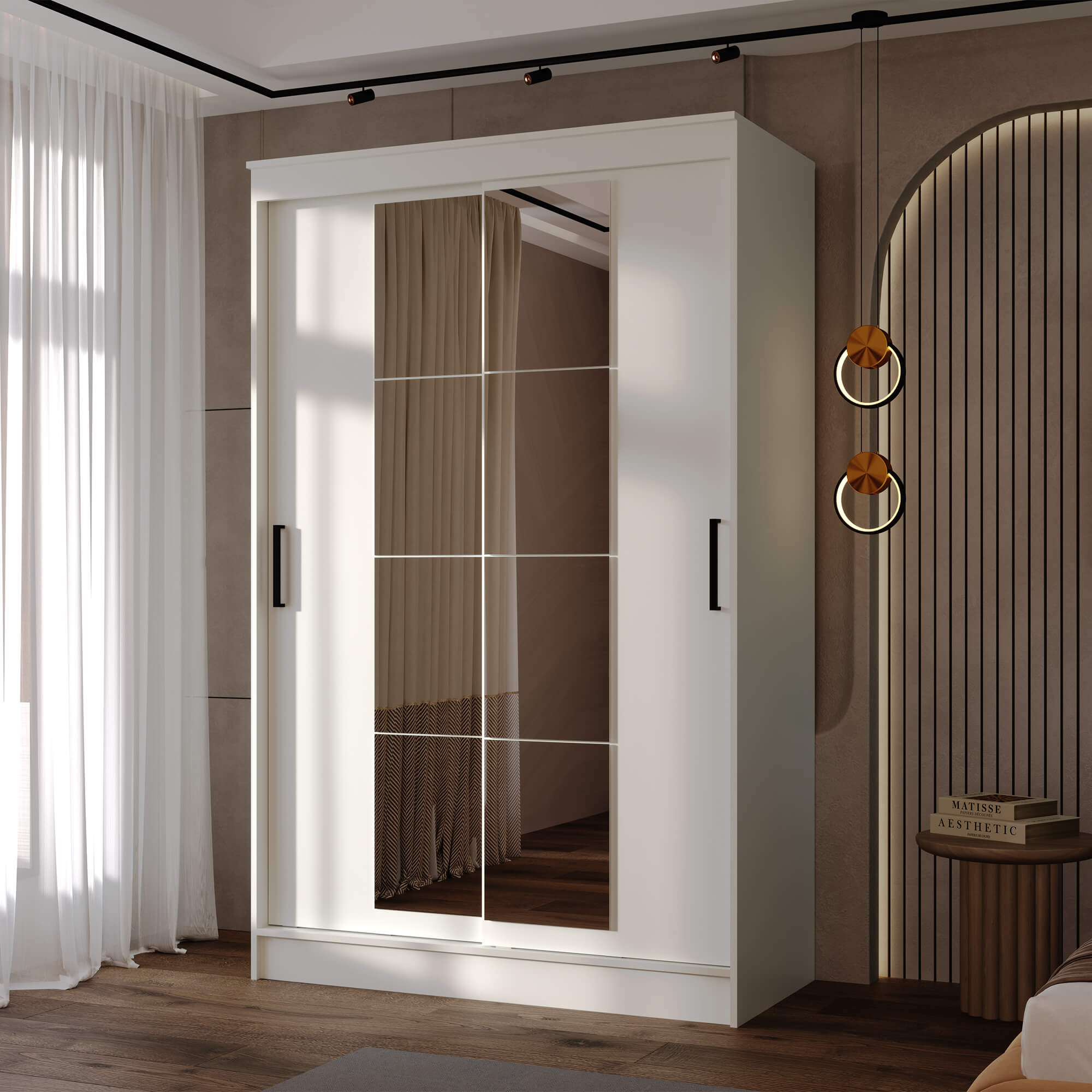 Двери шкафа-купе оснащены раздвижной системой, что обеспечивает удобство использования и экономит пространство.
