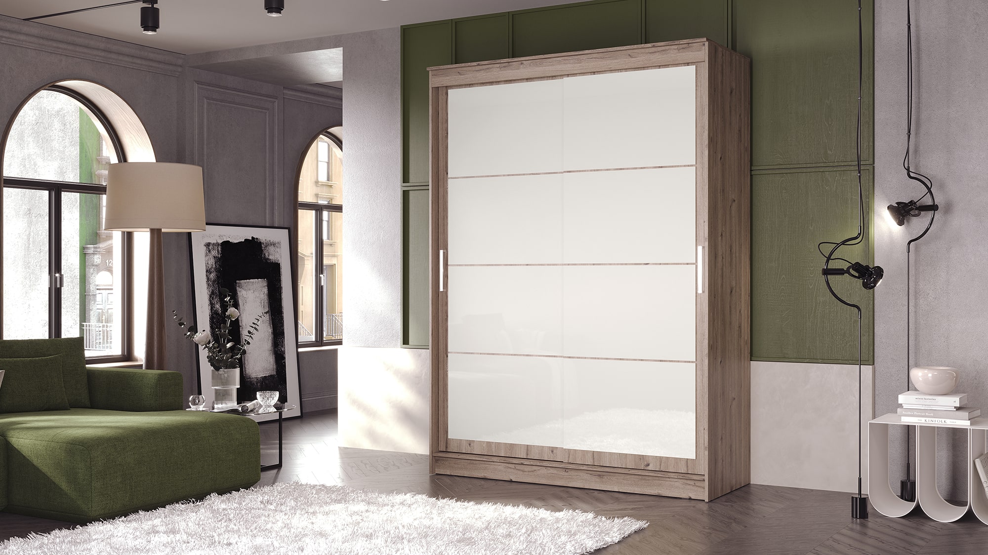 Шкаф-купе ГРАНД 1 1,6 Дуб горный/Лакобель белый доступен к заказу в различных вариантах исполнения цвета фасада и корпуса, среди которых каждый сможет найти подходящий своему интерьеру.
