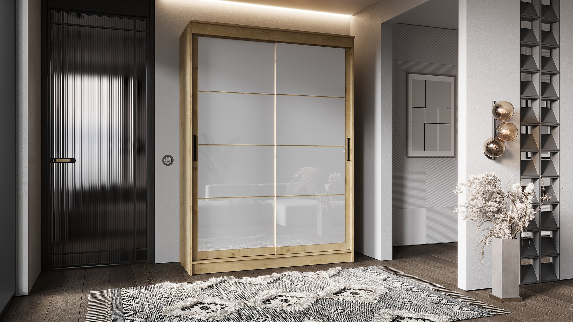 Шкаф-купе ГРАНД 1 1,6 Дуб вотан/Лакобель белый доступен к заказу в различных вариантах исполнения цвета фасада и корпуса, среди которых каждый сможет найти подходящий своему интерьеру.