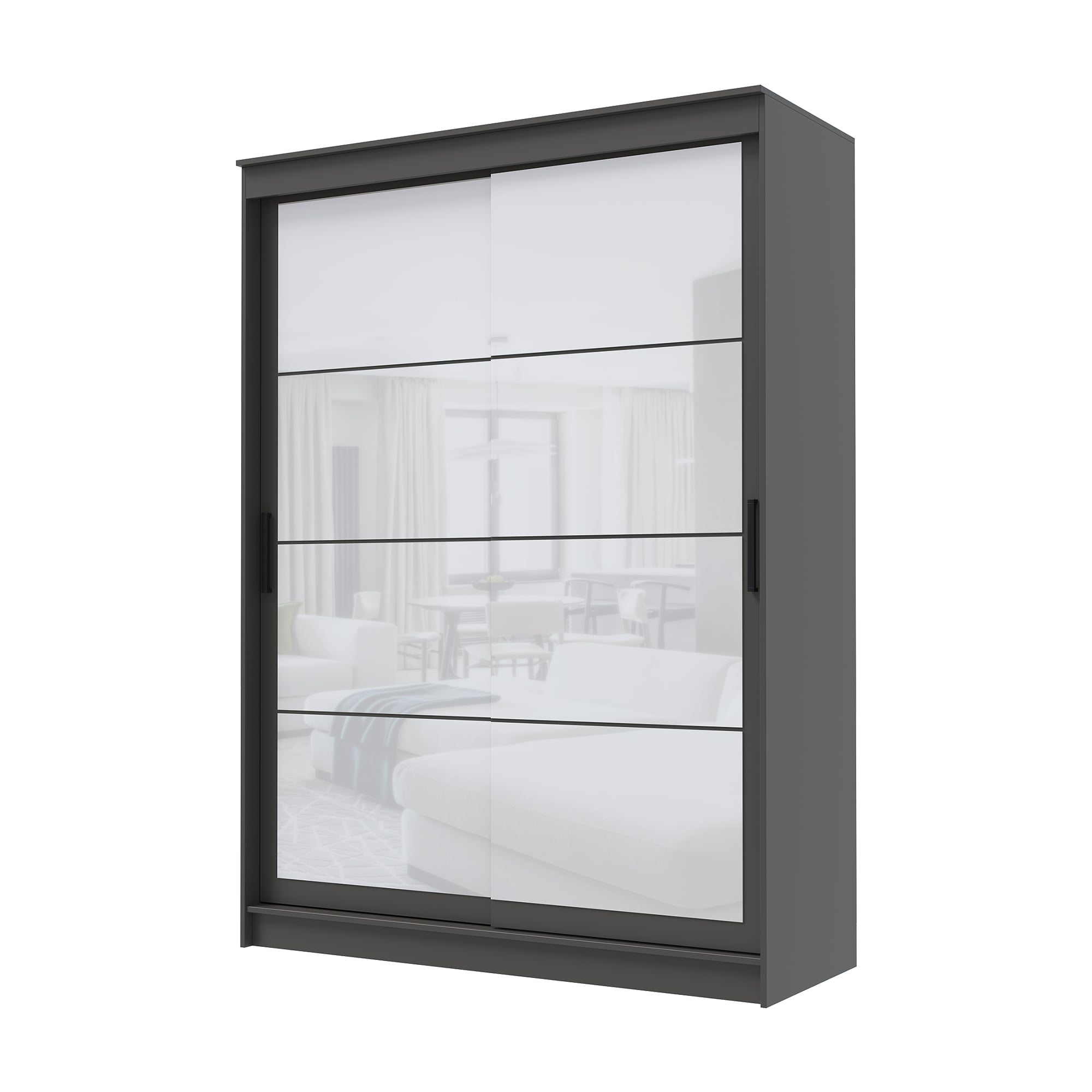 Шкаф-купе ГРАНД 1 1,6 Графит/Лакобель белый доступен к заказу в различных вариантах исполнения цвета фасада и корпуса, среди которых каждый сможет найти подходящий своему интерьеру.