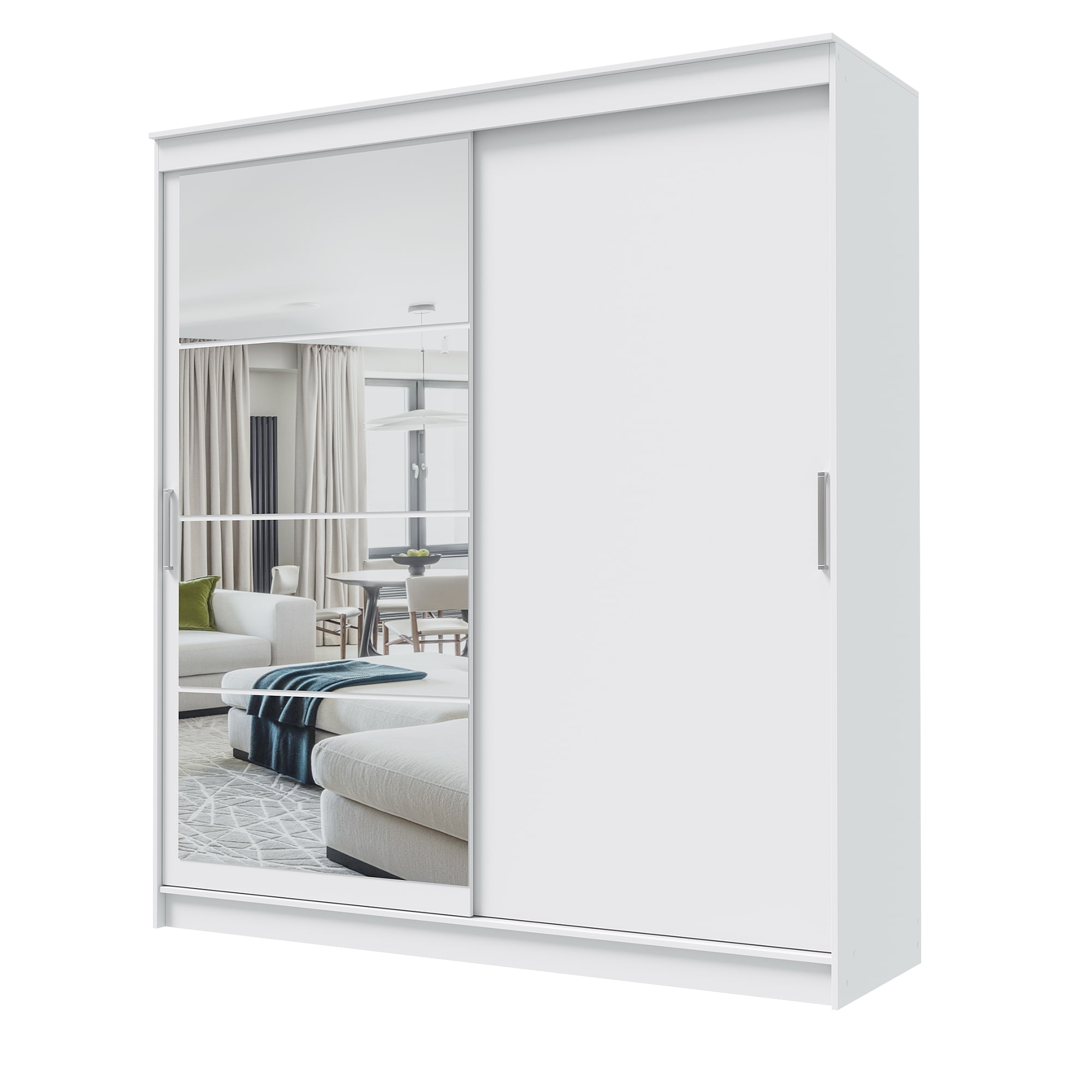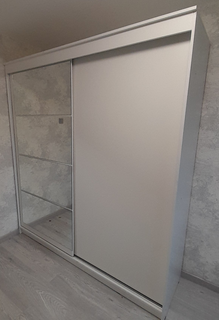 Шкаф-купе ГРАНД 1 2,0 Белый гладкий/Зеркало/Белый гладкий ЛДСП доступен к заказу в различных вариантах исполнения цвета фасада и корпуса, среди которых каждый сможет найти подходящий своему интерьеру.