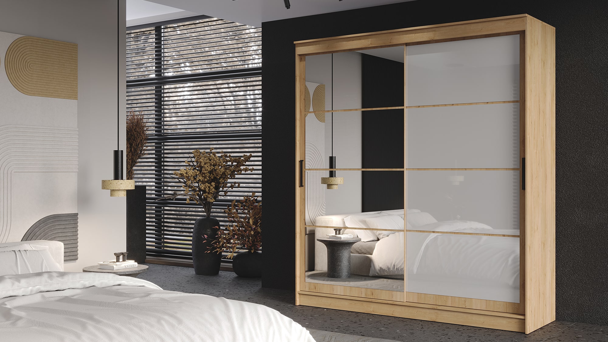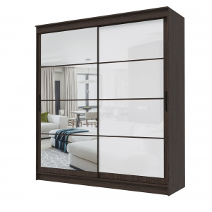 Шкаф-купе ГРАНД 1 2,0 Дуб вотан/Зеркало/Лакобель белый доступен к заказу в различных вариантах исполнения цвета фасада и корпуса, среди которых каждый сможет найти подходящий своему интерьеру.