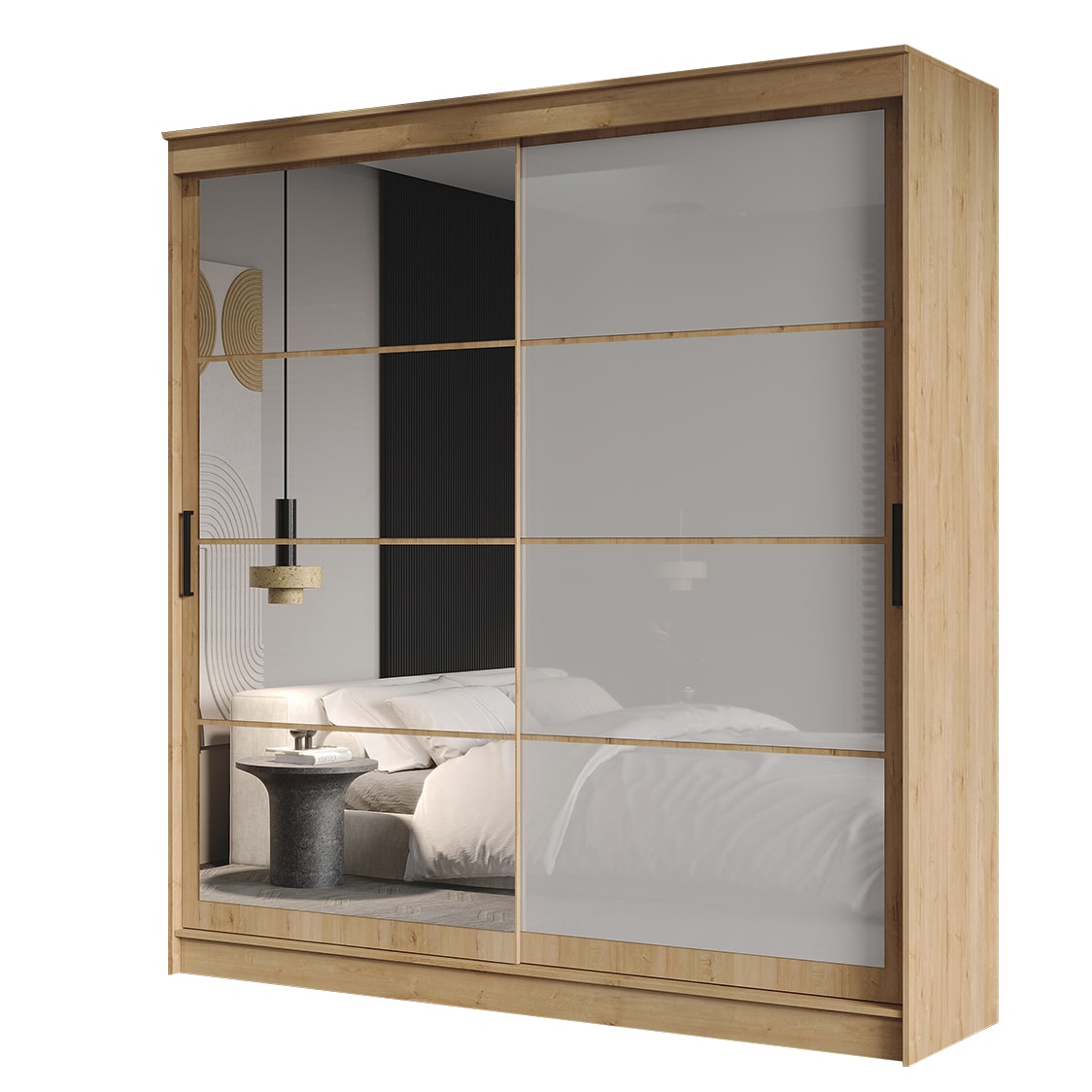 Шкаф-купе ГРАНД 1 2,0 Дуб вотан/Зеркало/Лакобель белый, материал корпуса - ЛДСП. Производитель - ЭРА.