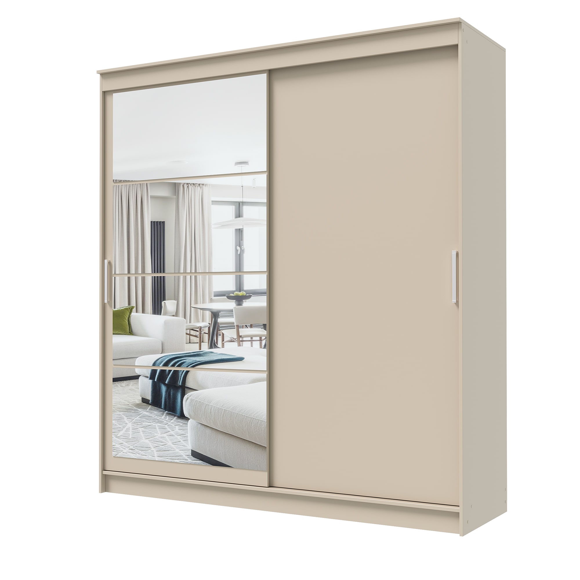Шкаф-купе ГРАНД 1 2,0 Сатин/Зеркало/Сатин ЛДСП доступен к заказу в различных вариантах исполнения цвета фасада и корпуса, среди которых каждый сможет найти подходящий своему интерьеру.