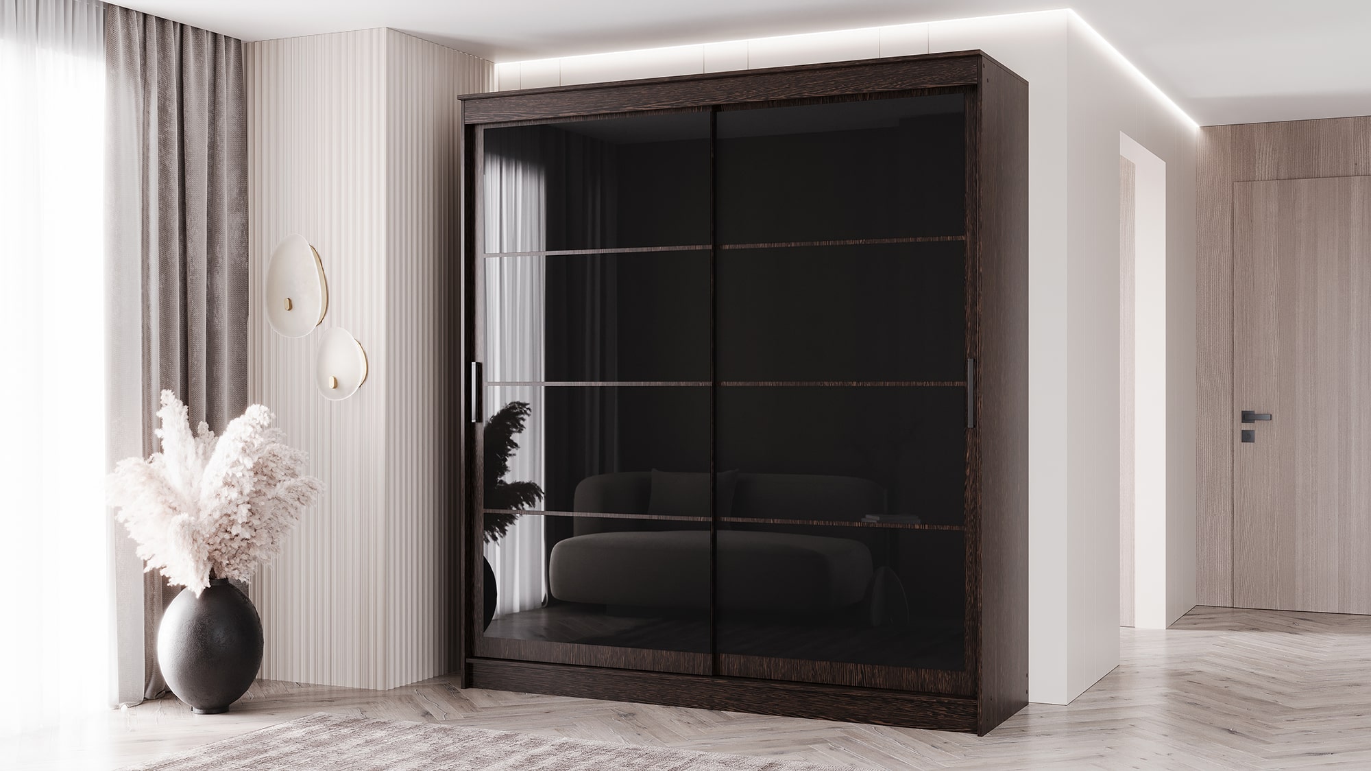 Шкаф-купе ГРАНД 1 2,0 Венге/Лакобель черный, материал корпуса - ЛДСП. Производитель - ЭРА.