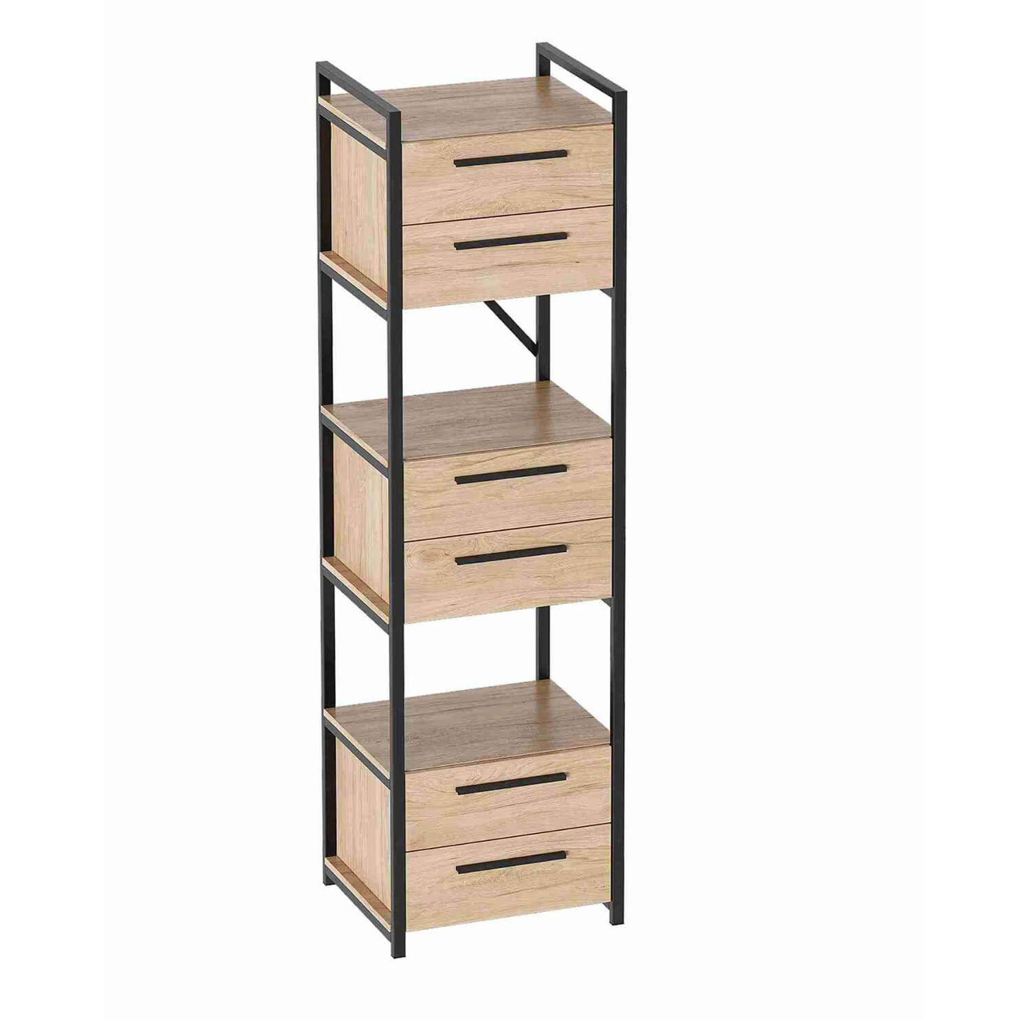 Материал полок – ЛДСП в цвете Дуб натуральный светлый. Металлокаркас с порошковым антикоррозийным напылением выполнен из углеродистой стали толщиной 2 мм, сечением профиля 20*20 и 20*30 мм.