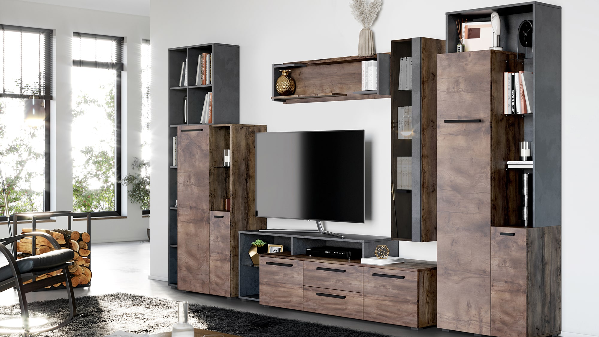 Стеллаж может использоваться только совместно с Двухдверной тумбой из набора для гостиной Глазго.