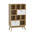 Стеллаж «Калгари» в скандинавском стиле решает проблему хранения и обеспечивает удобное размещение различных предметов. Его внутреннее пространство включает два выдвижных ящика и восемь отсеков.
