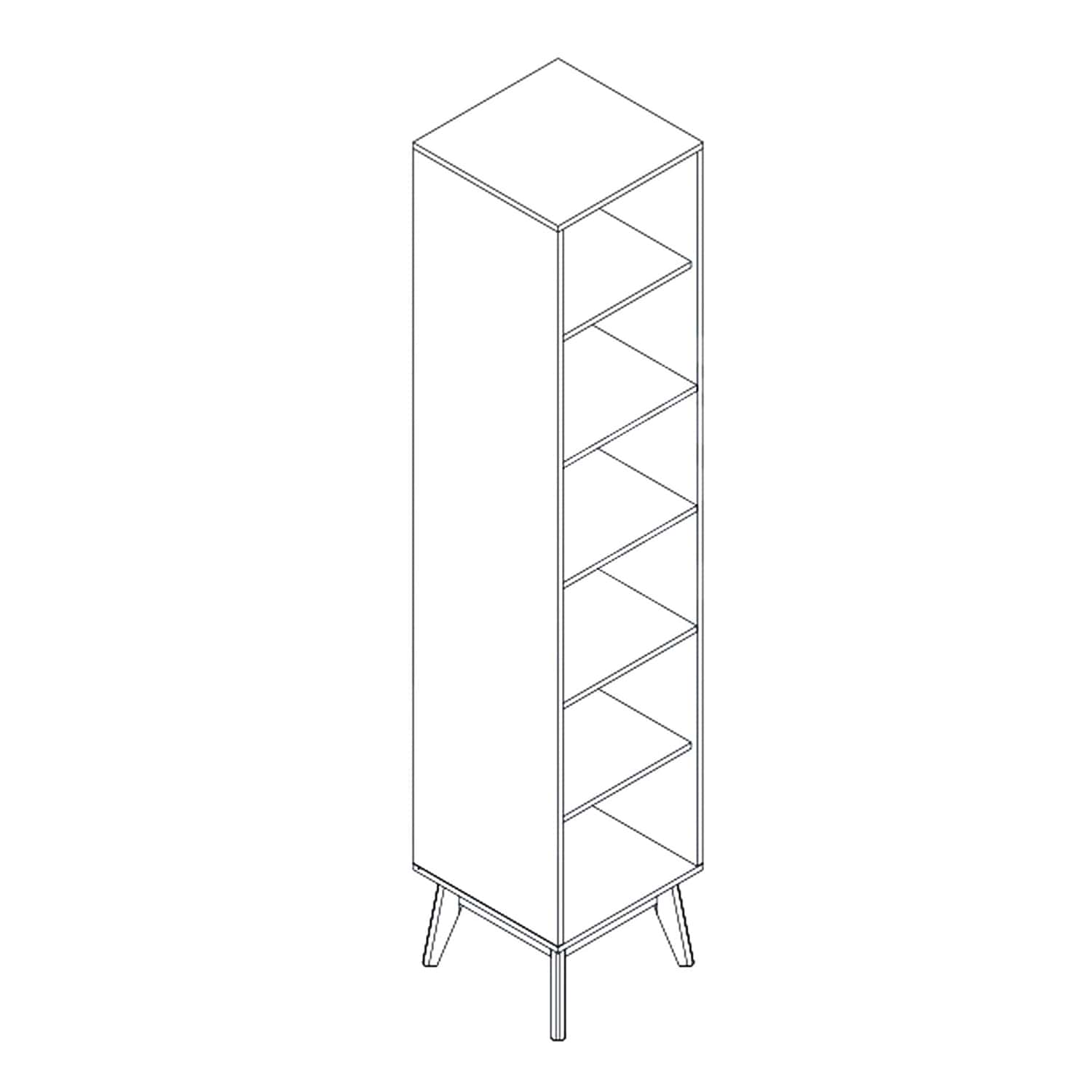 Стеллаж состоит из нескольких полок, на которых можно разместить книги, документы, фотографии и другие предметы. Он разделён на три секции вкладными боковинами: верхняя и нижняя закрыты дверцами, а в центре есть открытая полка.