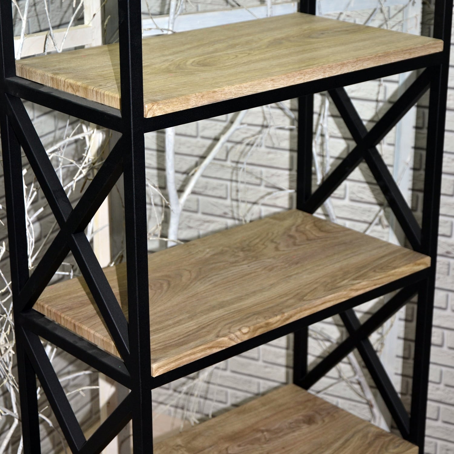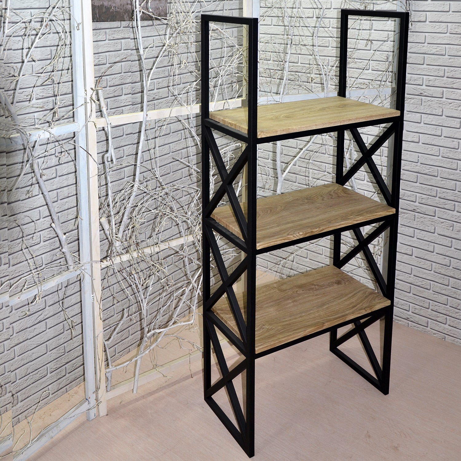 Металлический каркас из трубы 20х20 мм, порошковое покрытие черный муар, МДФ 16 мм в пленке ПВХ светлого цвета.