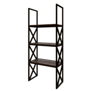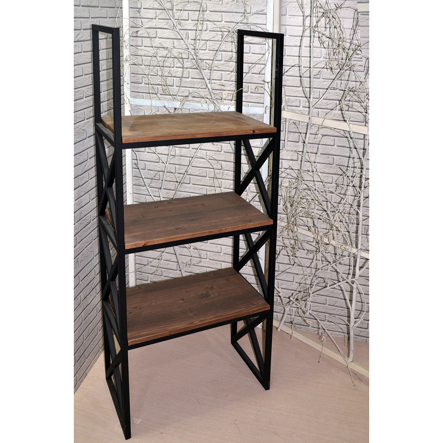 Металлический каркас из трубы 20х20 мм, порошковое покрытие черный муар, МДФ 16 мм в пленке ПВХ темного цвета.