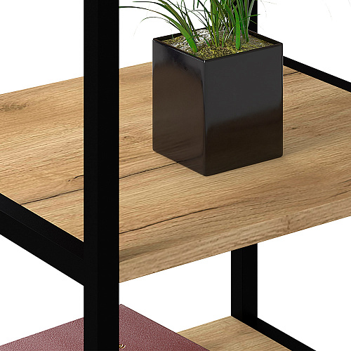 Каркас из трубы 20х20 мм, порошковое покрытие черный муар, ЛДСП 16 мм цвет дуб табачный, кромка 2мм.