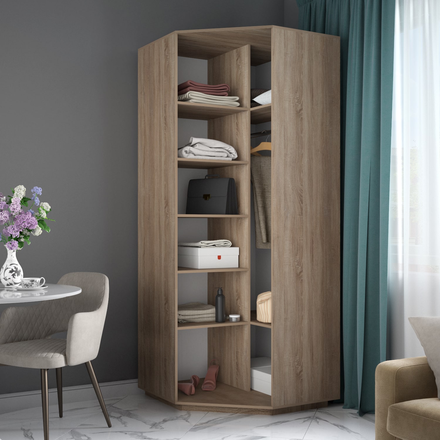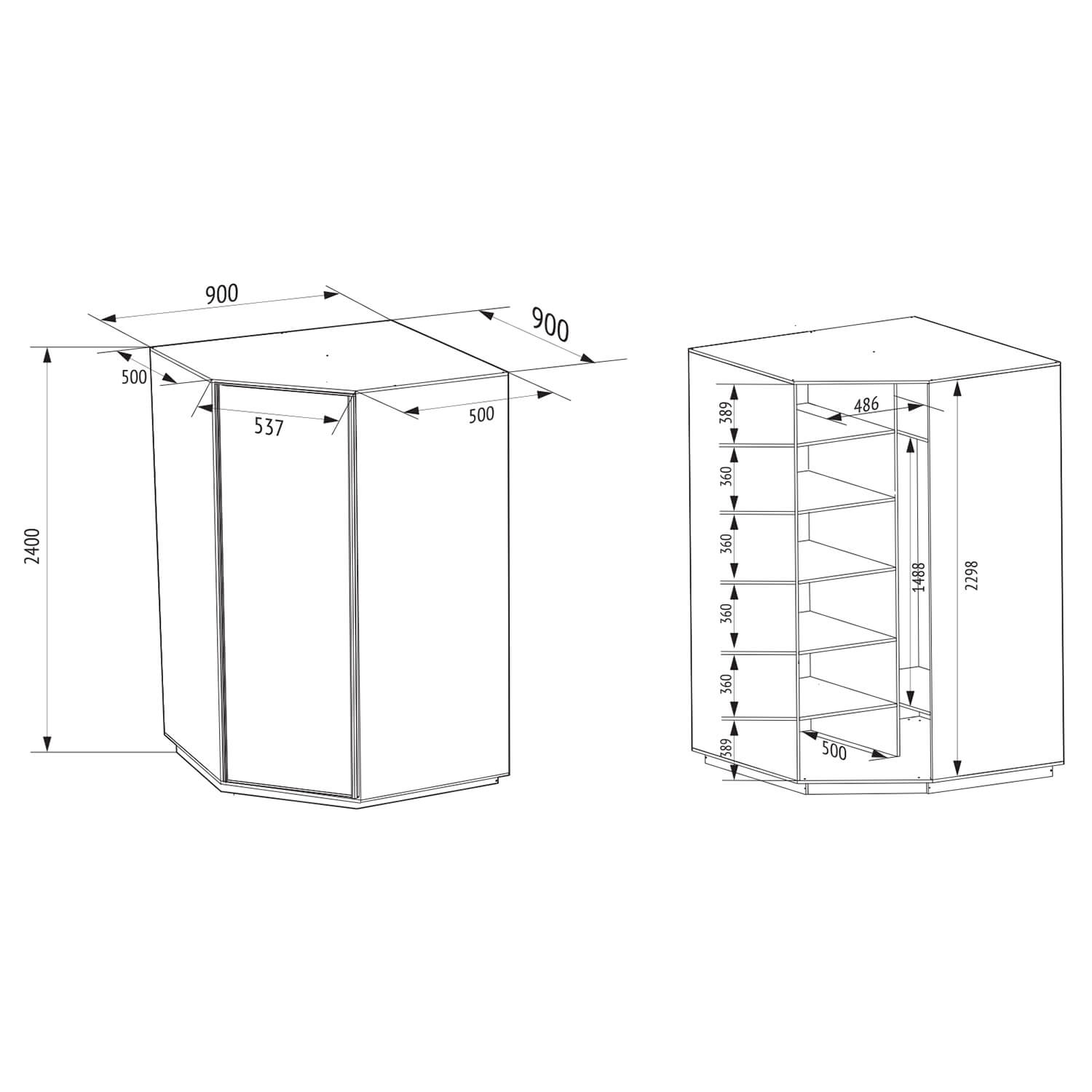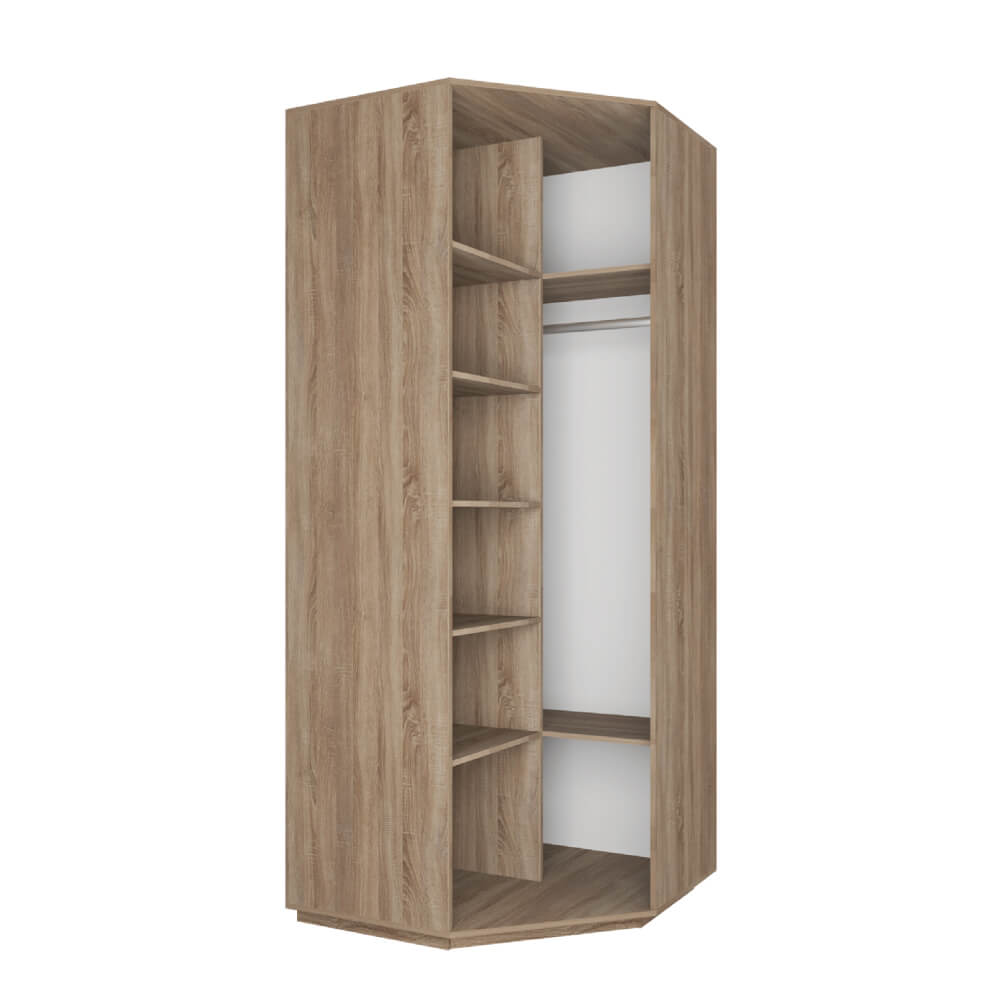 Солидное наполнение: с левой стороны углового «Экспресса» располагается 5 полок, с правой — две полки и штанга для одежды.