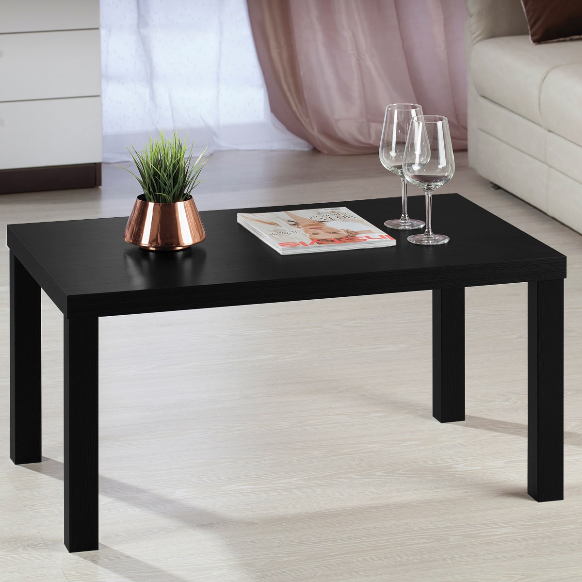 Столик выполнен в минималистическом стиле, что позволяет ему легко вписываться в любой интерьер.