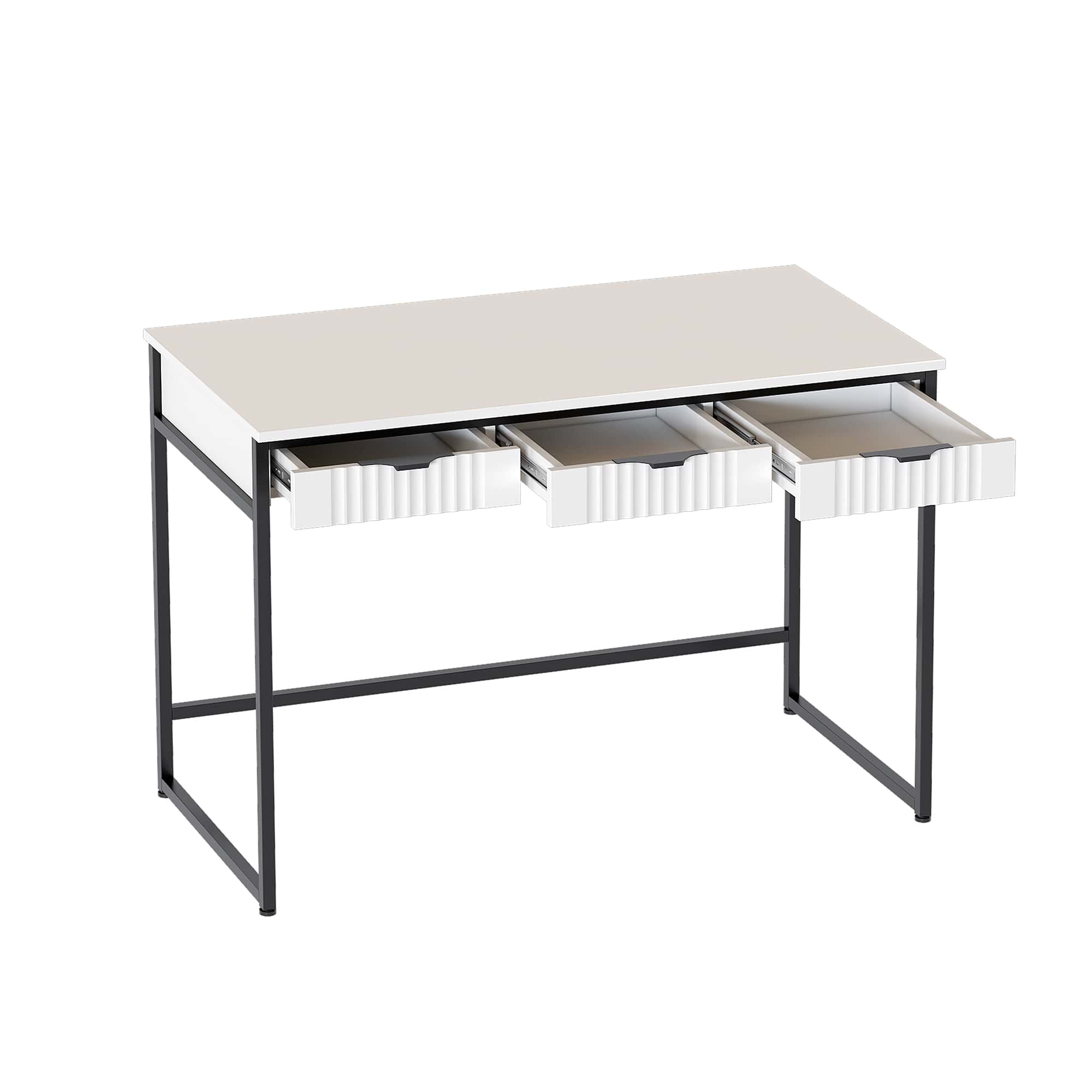 Три ящика полного выдвижения под столешницей идеально подойдут для хранения письменных принадлежностей, блокнотов и документов.
