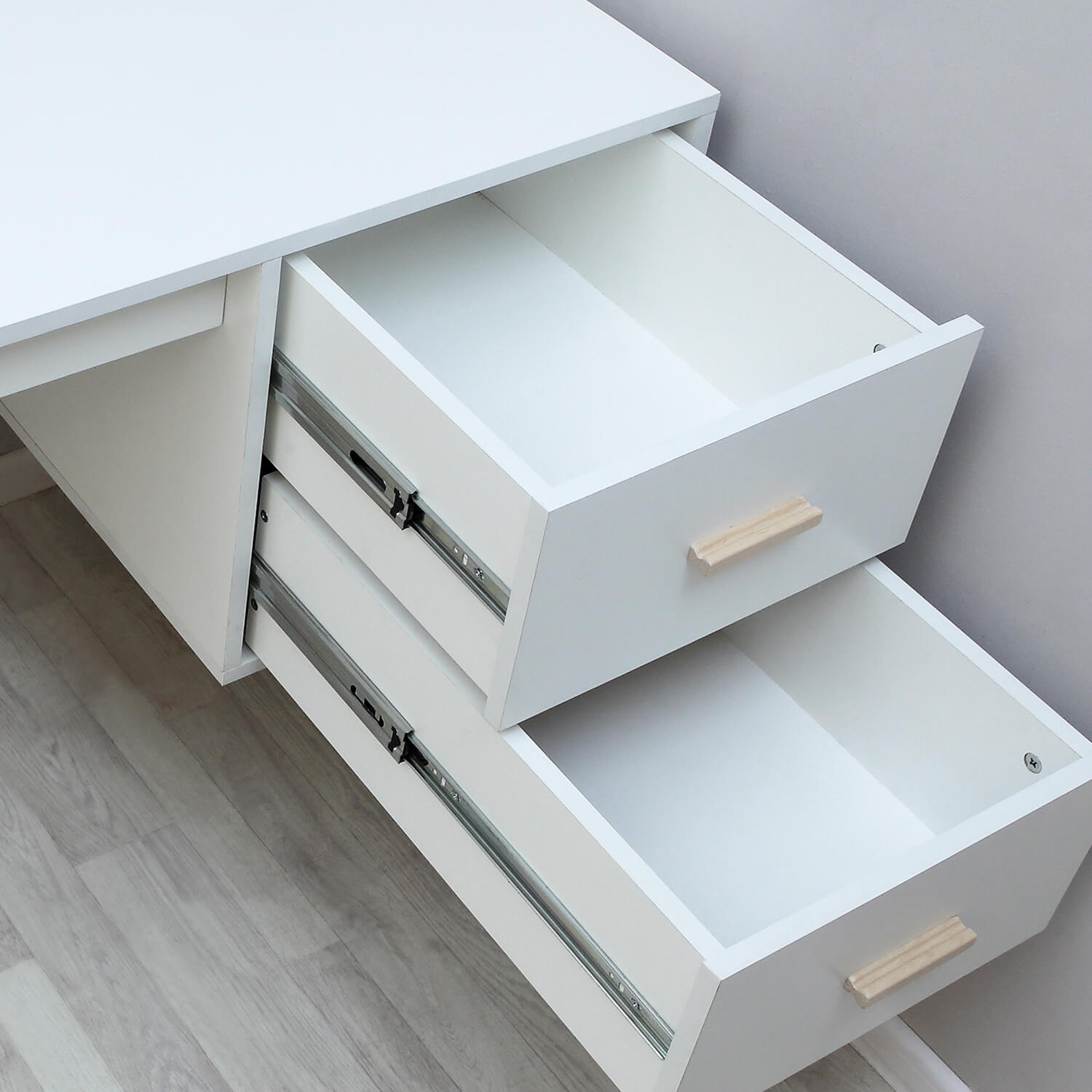 - выдвижные ящики на телескопических направляющих, которые обеспечивают полное и плавное открывание ящика и выдерживают большие нагрузки;