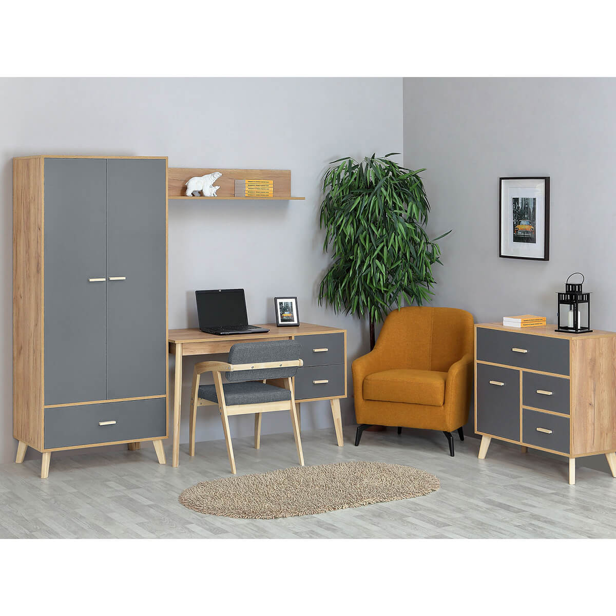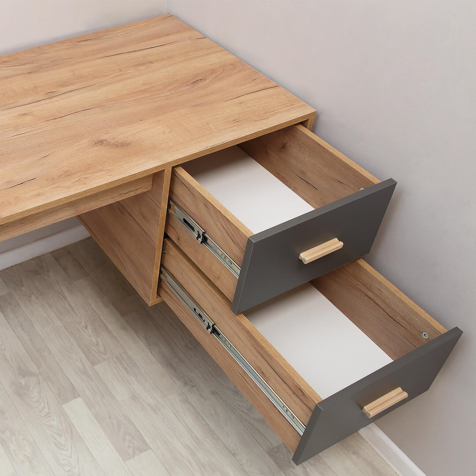 Стол письменный с тумбой Скандик Дуб Крафт золотой/Графит серый