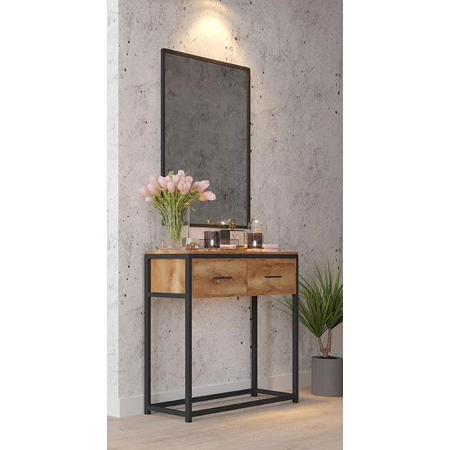 Каркас из трубы 25х25 мм, порошковое покрытие черный муар, ЛДСП 16 мм, цвет дуб табачный, кромка 2 мм, направляющие скрытого монтажа с доводчиком.