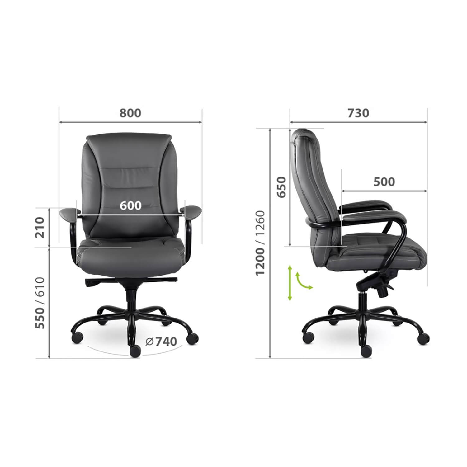 Металлическая рама усиливает каркас. Механизм качания мультиблок с регулировкой под вес пользователя фиксирует спинку вертикально и позволяет отклонять её назад в 5 положениях.