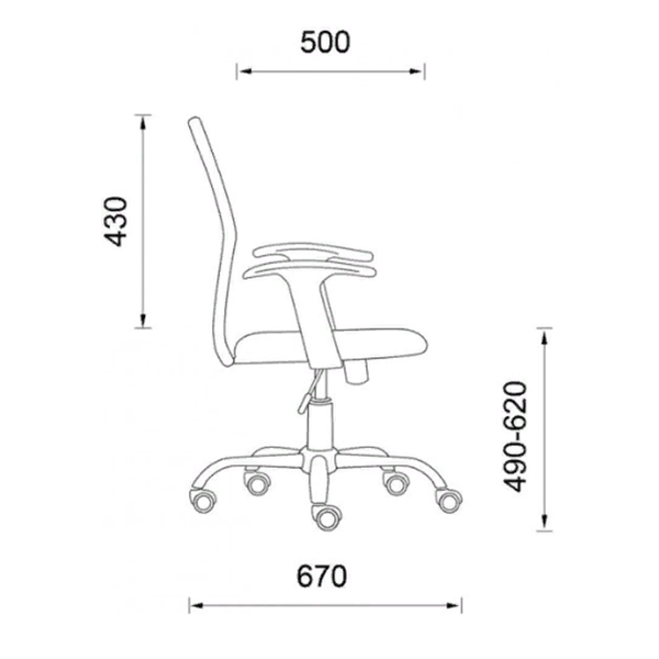 Основание: пятилучье, пластик, d=600..630 мм Ролики:открытый чехол, пластик с полиуретановым покрытием, d=11 мм Подлокотники: Т01