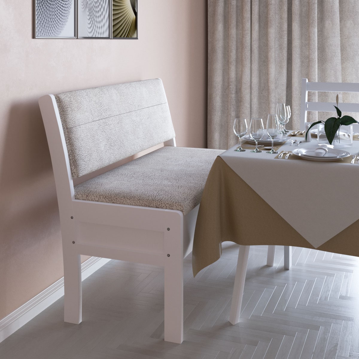 Кухонный диван Этюд облегченный прямой с ящиком 1390 эмаль белая