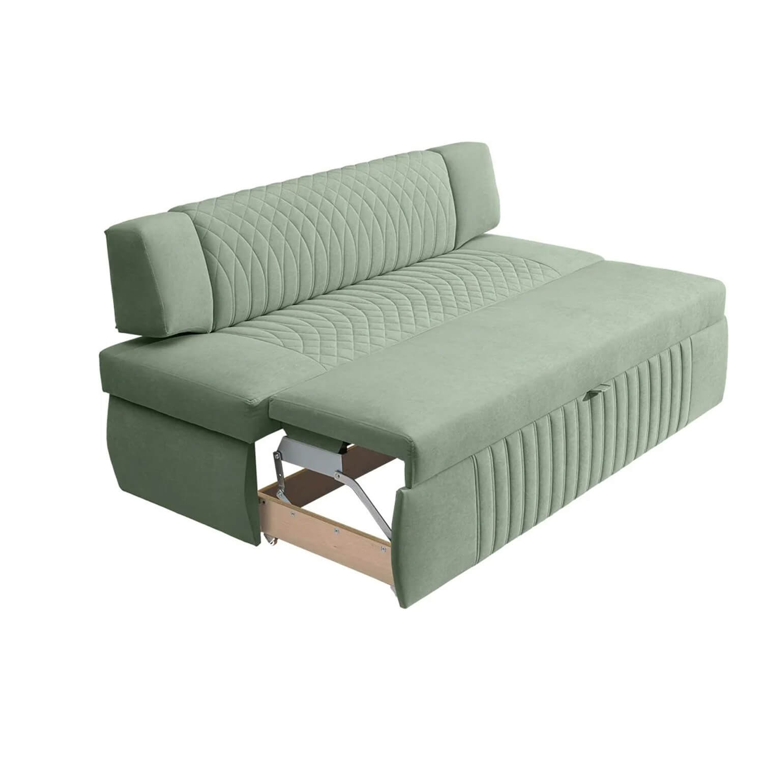 Обивка из износостойкого велюра придает дивану роскошный вид и легко чистится, что делает его идеальным выбором для активного использования в кухнях и других помещениях. Механизм трансформации «Дельфин» позволяет быстро и удобно превращать диван в полноценное спальное место, что делает его функциональным и практичным.