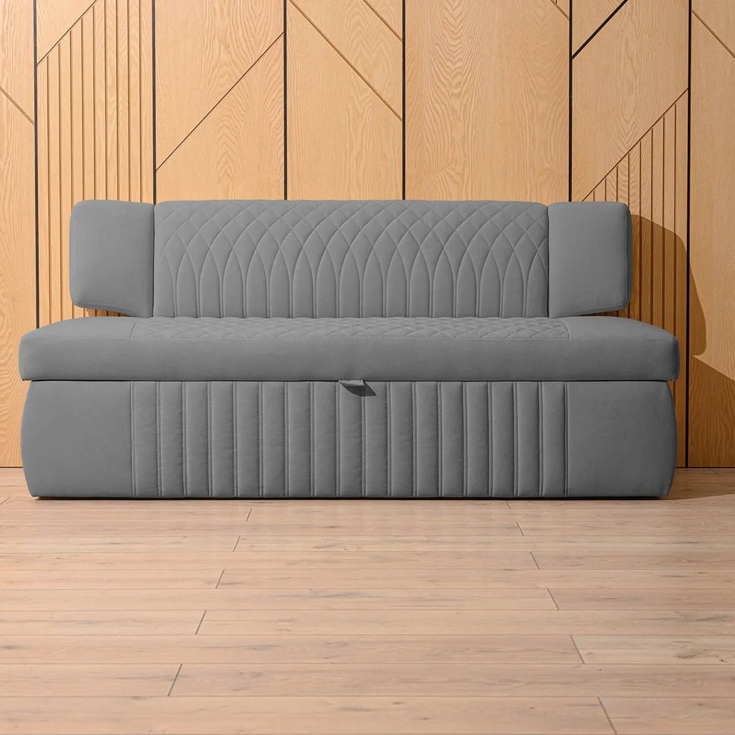 Обивка из износостойкого велюра придает дивану роскошный вид и легко чистится, что делает его идеальным выбором для активного использования в кухнях и других помещениях. Механизм трансформации «Дельфин» позволяет быстро и удобно превращать диван в полноценное спальное место, что делает его функциональным и практичным.