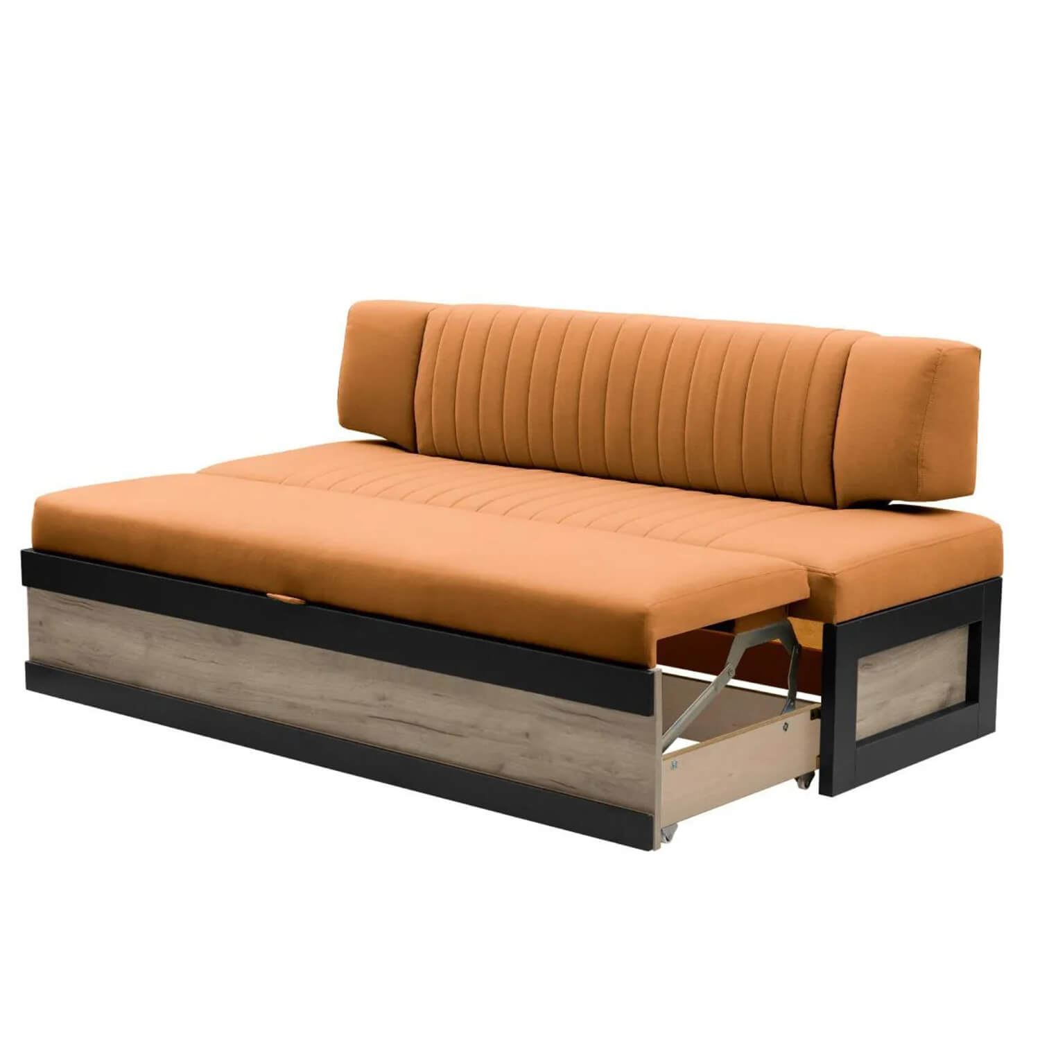 Кухонный диван "Орион" - это идеальное решение для вашего дома, кухни или гостиной, сочетая в себе стиль, комфорт и функциональность. Обивка из износостойкого велюра в ярком оранжевом оттенке создает атмосферу уюта и свежести, а сочетание с ЛДСП в цвете Дуб крафт серый придает дивану элегантный и современный вид.
