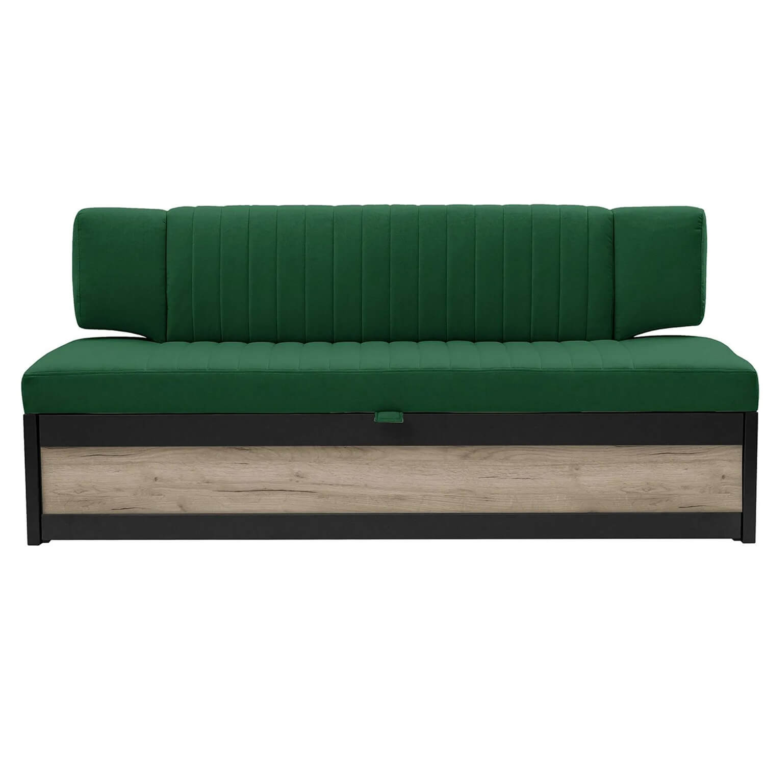 Кухонный диван "Орион" - это идеальное решение для вашего дома, кухни или гостиной, сочетая в себе стиль, комфорт и функциональность. Обивка из износостойкого велюра в ярком зеленом оттенке создает атмосферу уюта и свежести, а сочетание с ЛДСП в цвете Дуб крафт серый придает дивану элегантный и современный вид.