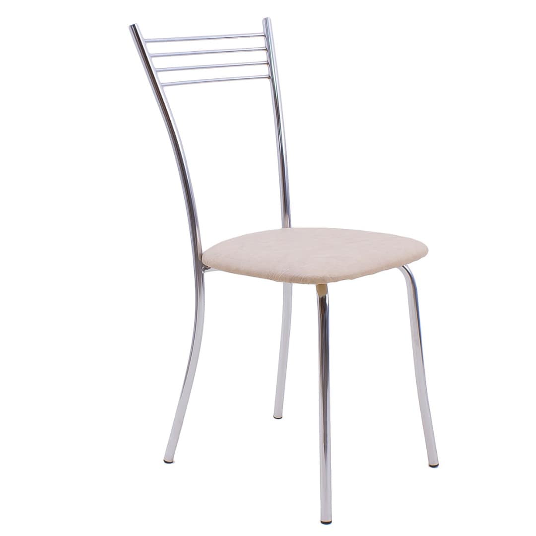 Каркас стула выполнен из стали и хромирован, что обеспечивает его прочность и долговечность. Основание сиденья изготовлено из металла, а обивка выполнена из искусственной кожи Z-21 бежевого цвета. Это гарантирует комфорт и удобство при использовании.
