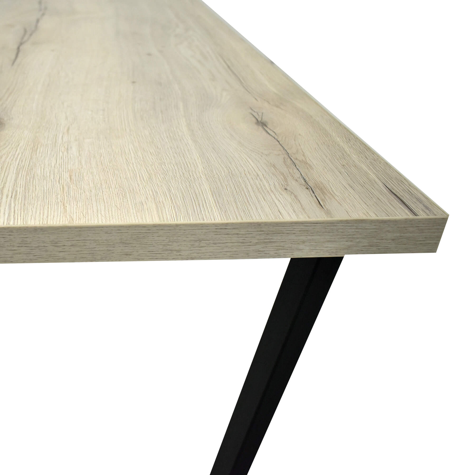 Трапециевидные опоры из трубы квадратного профиля придают столу актуальный силуэт, который идеально впишется в современый интерьер в стиле лофт. Поверхность столешницы – высококачественная ЛДСП Egger, 32 мм.