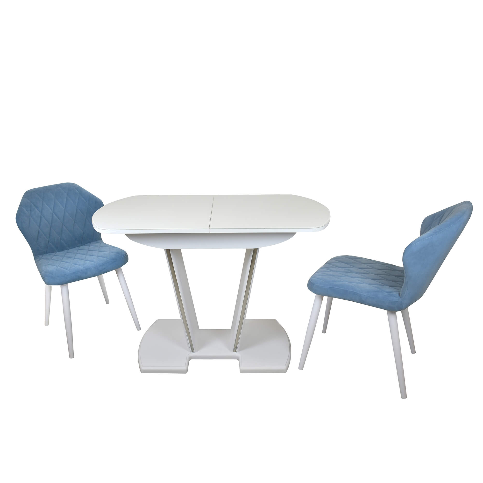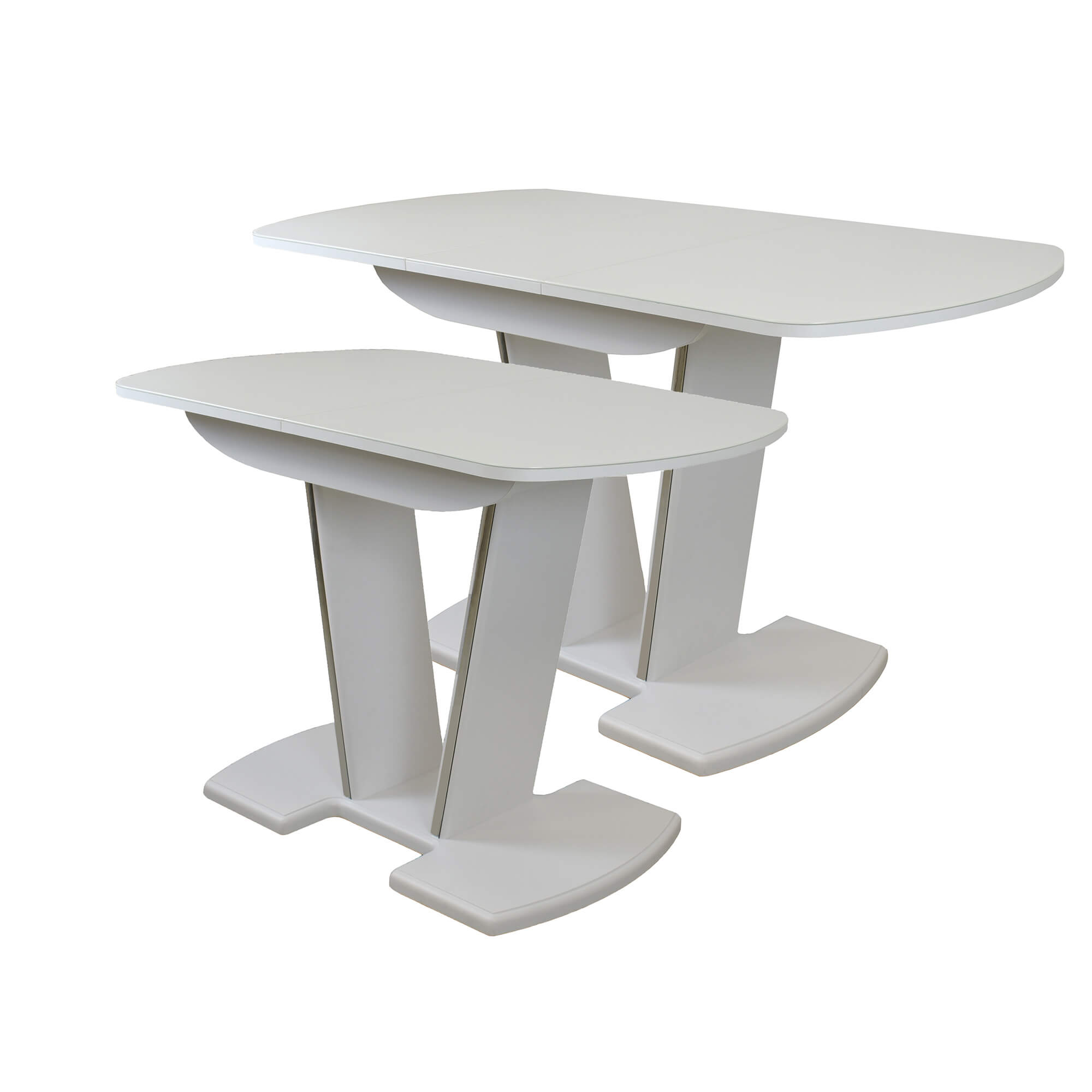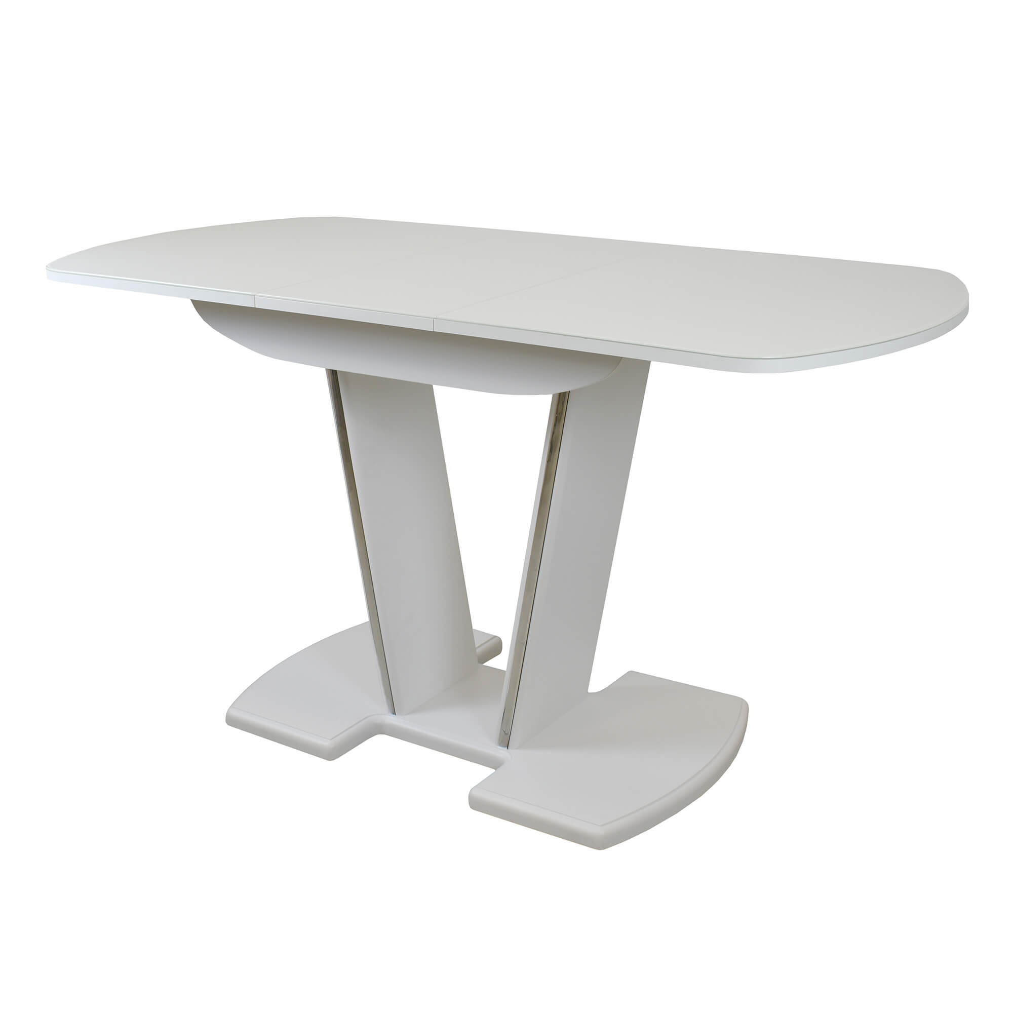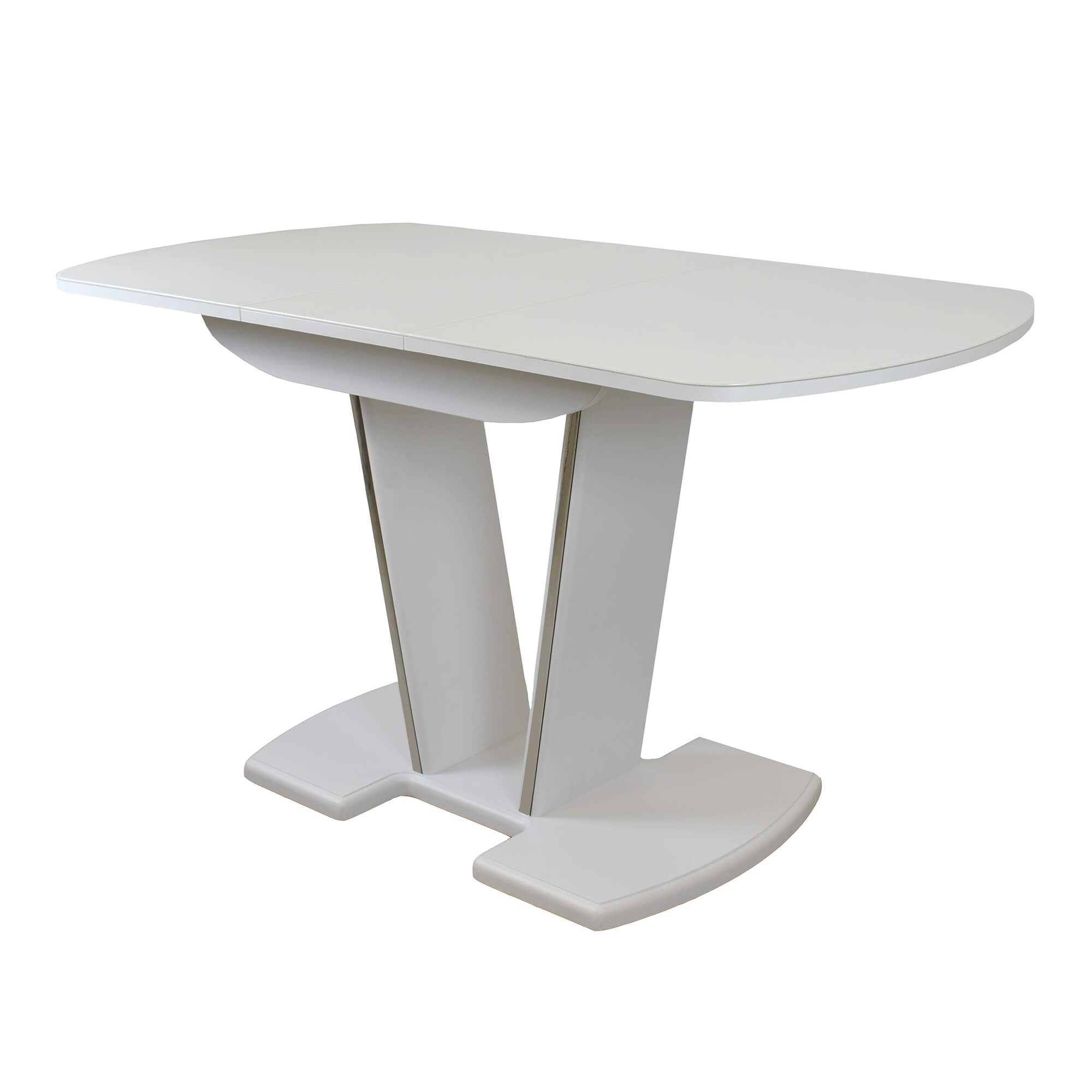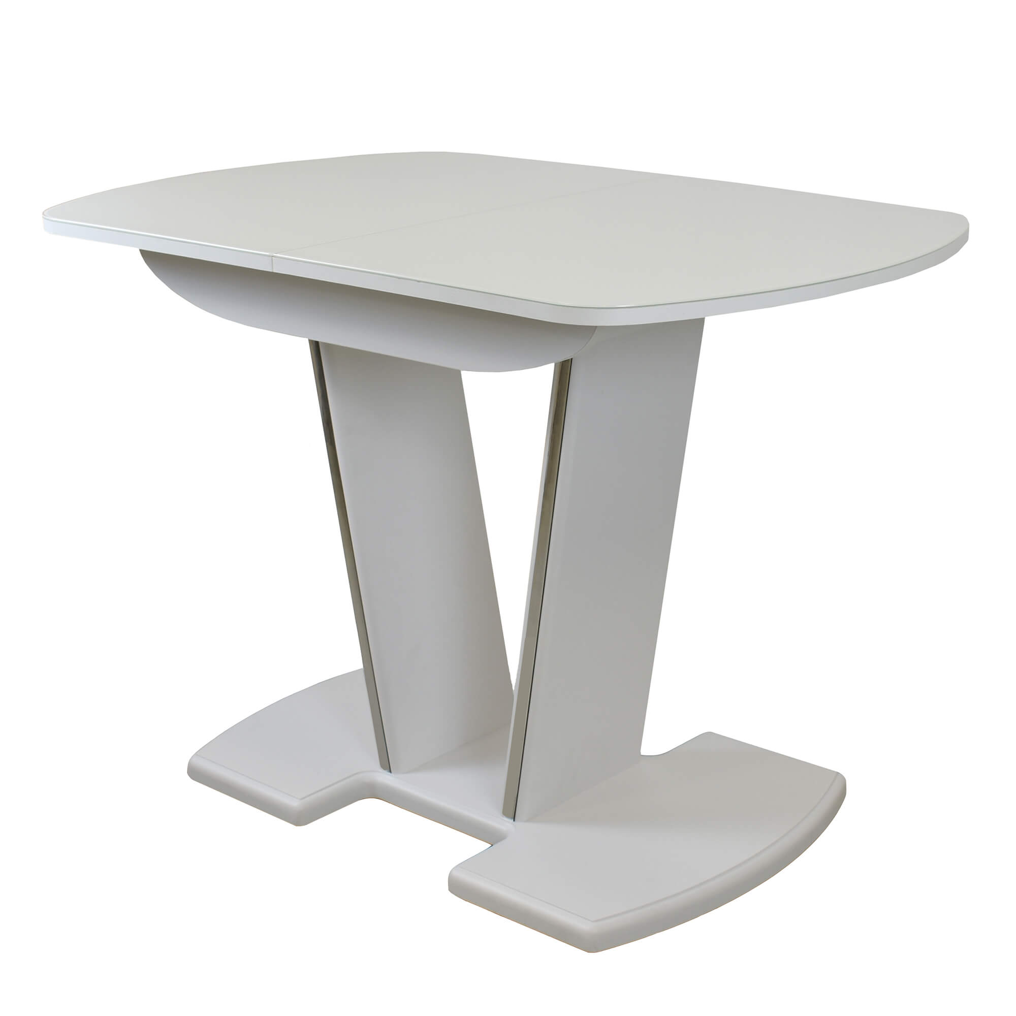 Раздвижной обеденный стол с инновационной V-образной опорой. Легко раскладывается, многофункционален, удобен. Выполнен из ЛДСП 16 мм, столешница покрыта высококачественным закаленным стеклом 4 мм с безопасной фаской Safe face. Стекло окрашено немецкими керамическими красками Ferro.