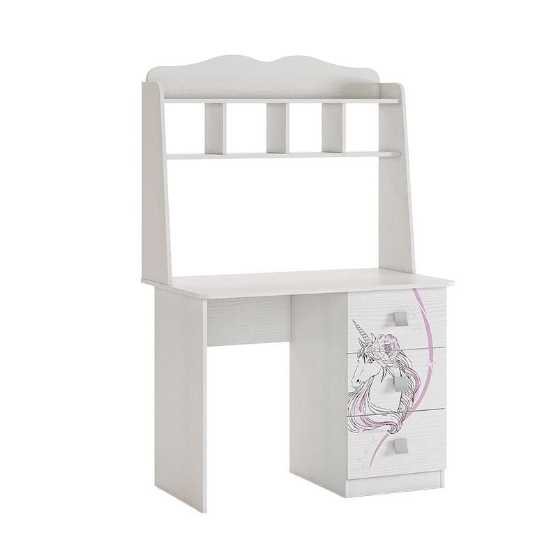 Стол Фэнтези — это идеальный выбор для детской комнаты. С компактными размерами, он обеспечивает достаточно пространства для учебы и хранения. Нежный рисунок на фасаде вносит тепло и вдохновляет, а модульное исполнение позволяет создать гармоничное пространство. Особенности стола включают открытые полки для школьных принадлежностей и тумбу с тремя просторными ящиками, которую можно расположить как слева, так и справа.