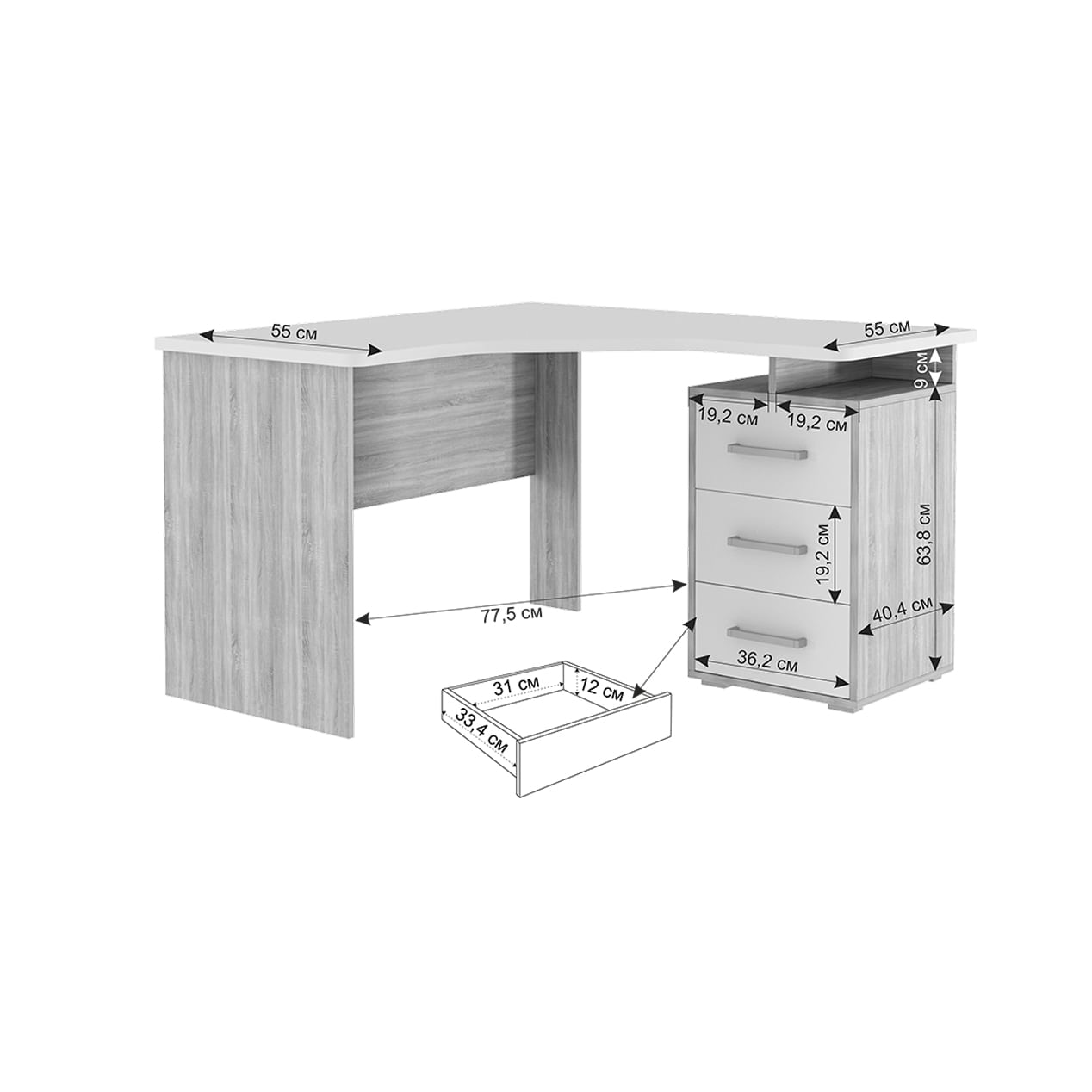 Стол письменный НК КВАДРО Дуб Сонома/Белый