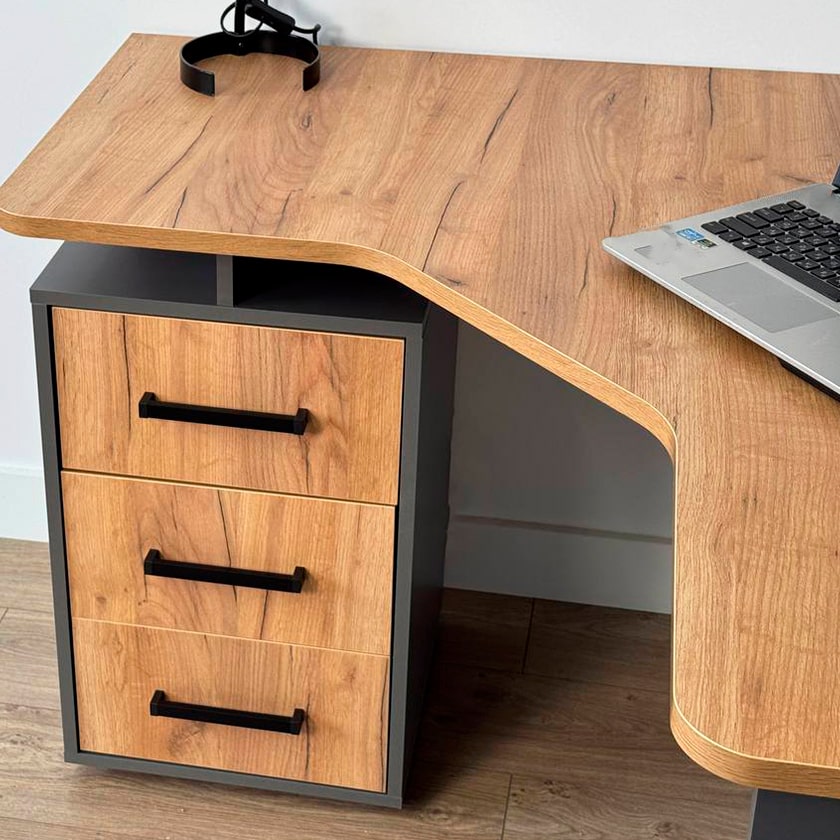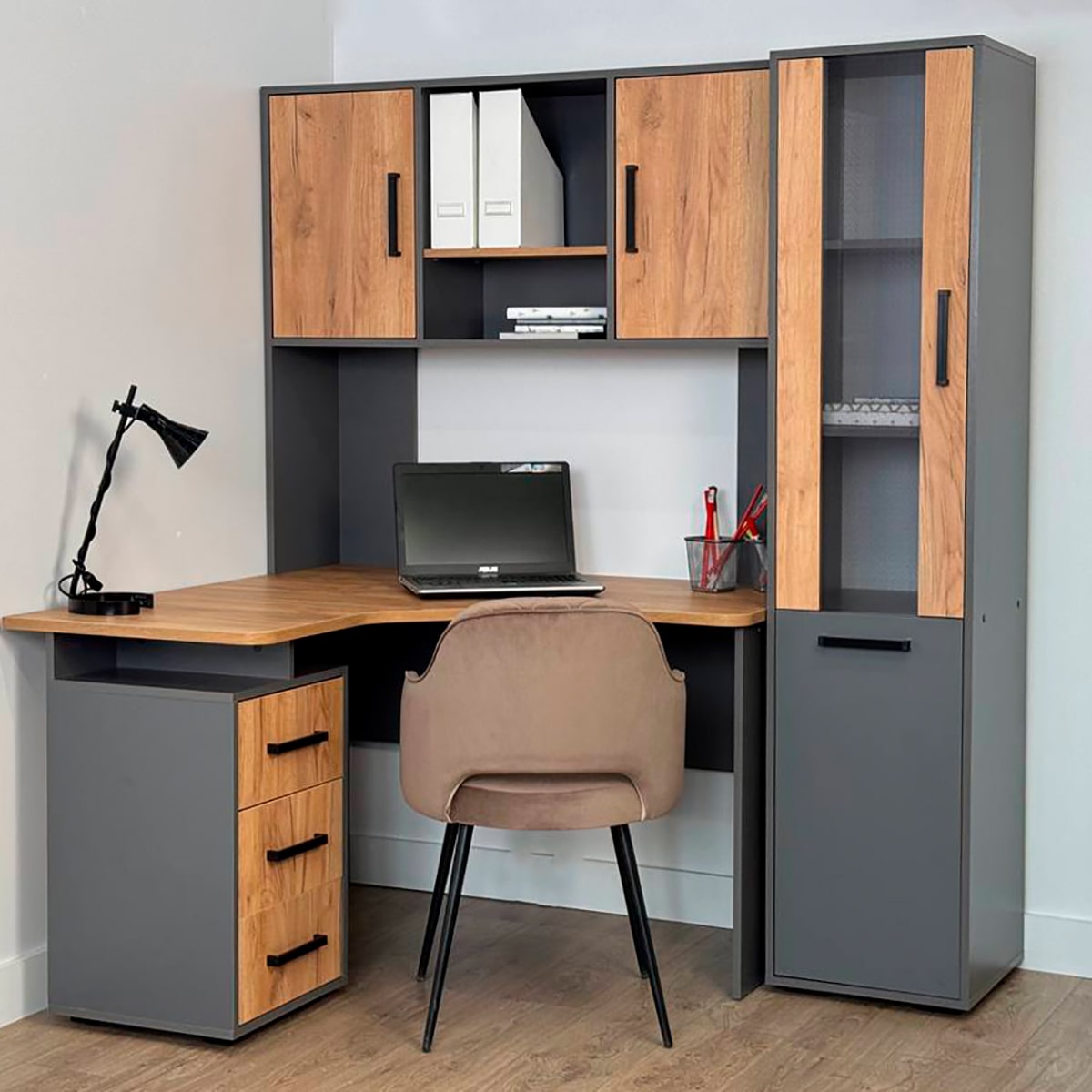 Стол компьютерный Лайт-2 1200 угловой графит/дуб крафт золотой