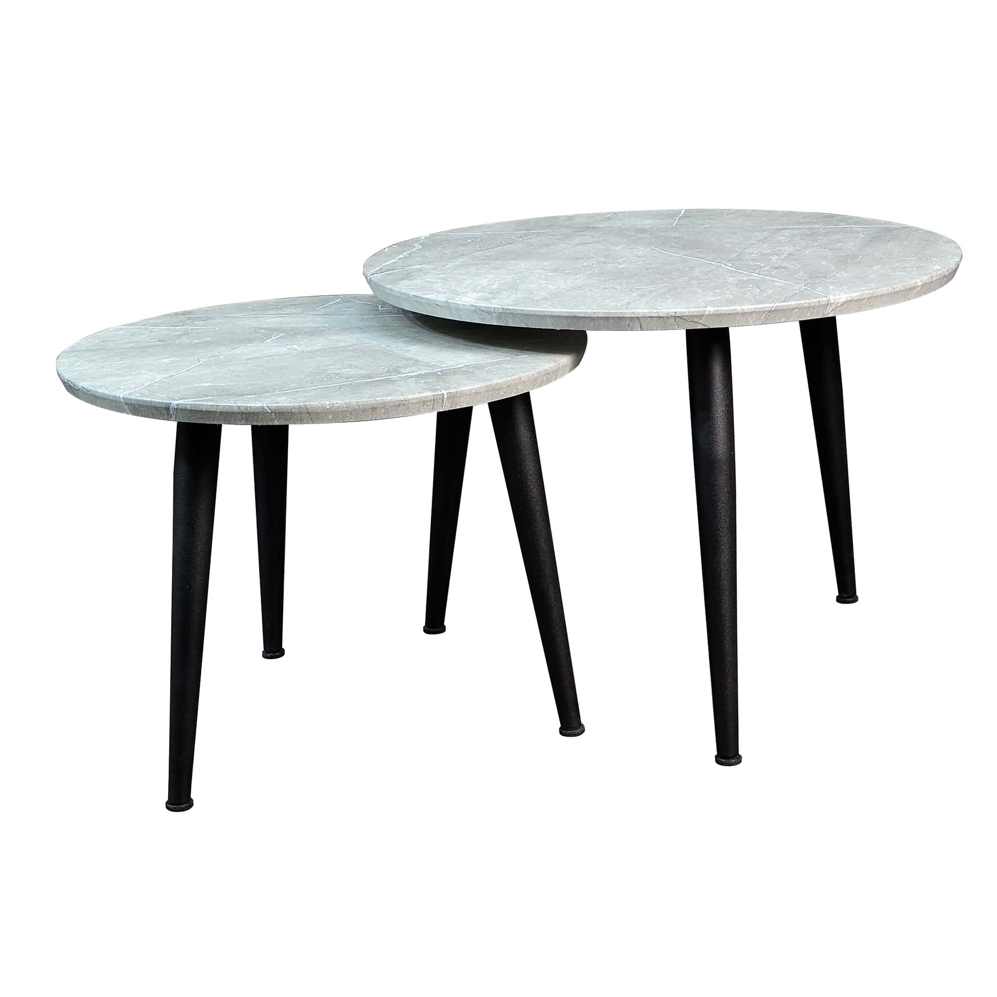 Диаметр большого 600, малого 500. Высота большого - 450 мм, высота малого - 400 мм. Опора конусная порошковое покрытие черный муар, МДФ 19мм в пленке ПВХ - Marbele Creek.