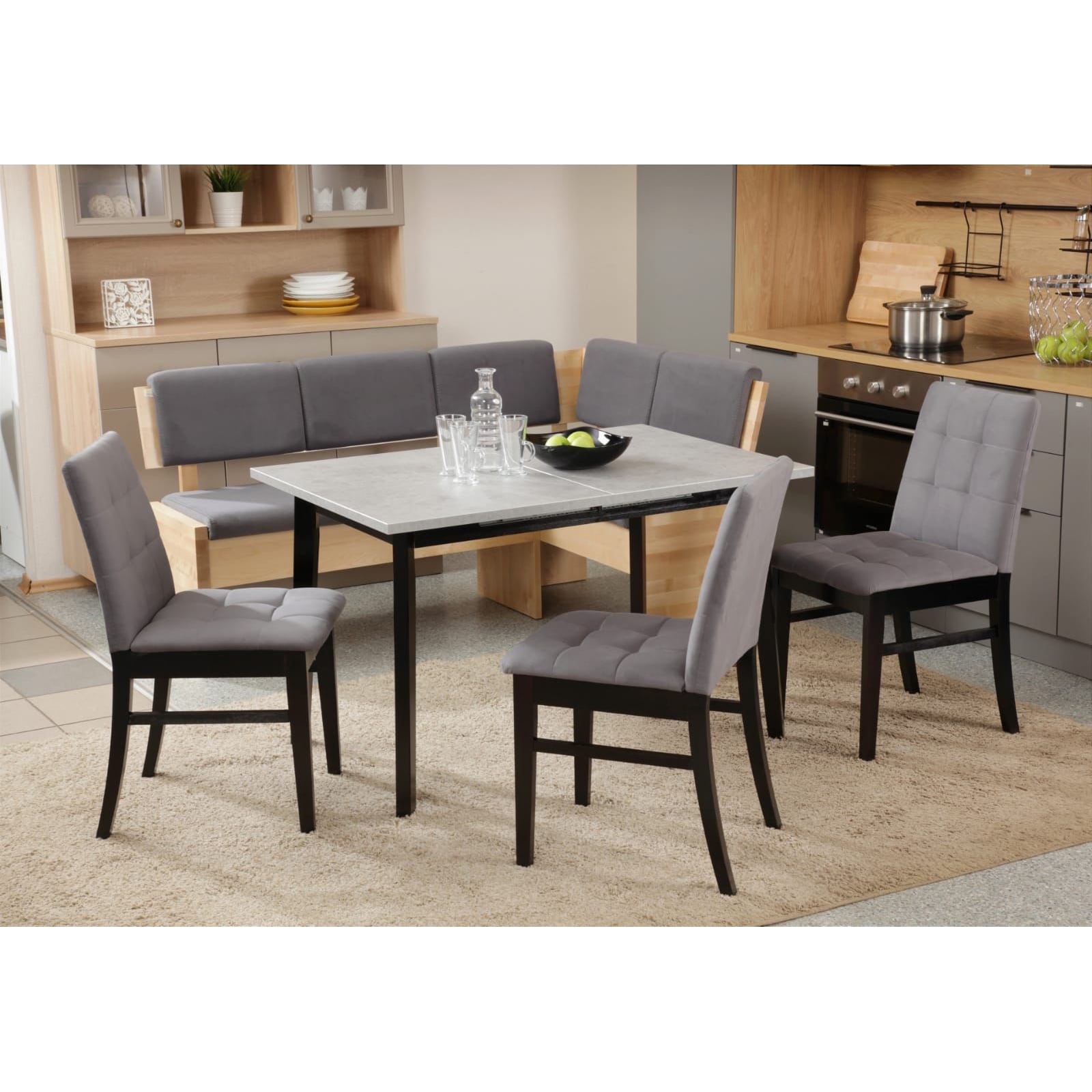 Стол оснащен четырьмя ножками, выполненными из массива дерева, что придает ему особую эстетику и устойчивость. Цвет ножек - черный, что подчеркивает их элегантность.