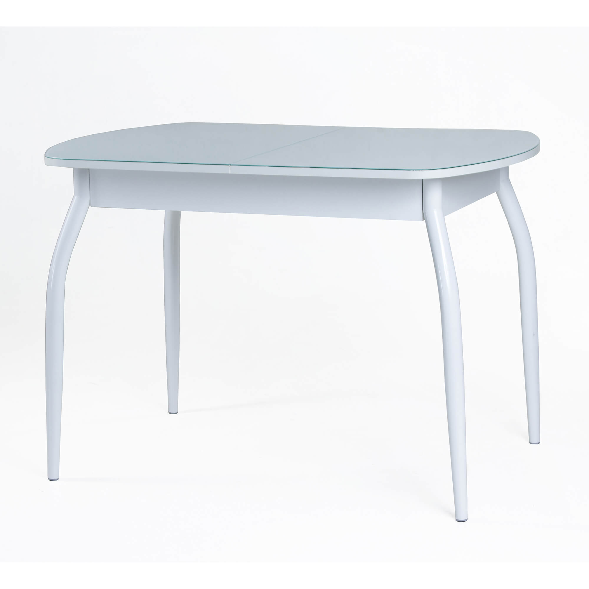 Стол раздвижной со столешницей с закругленными углами. Выполнен из ЛДСП 16 мм и прочного закаленного стекла толщиной 4 мм, окрашенного немецкими керамическими красками Ferro. Высококачественное стекло изготовлено со специальной безопасной фаской Safe face. Закругленные формы столешницы и ножек обеспечивают безопасность при эксплуатации.