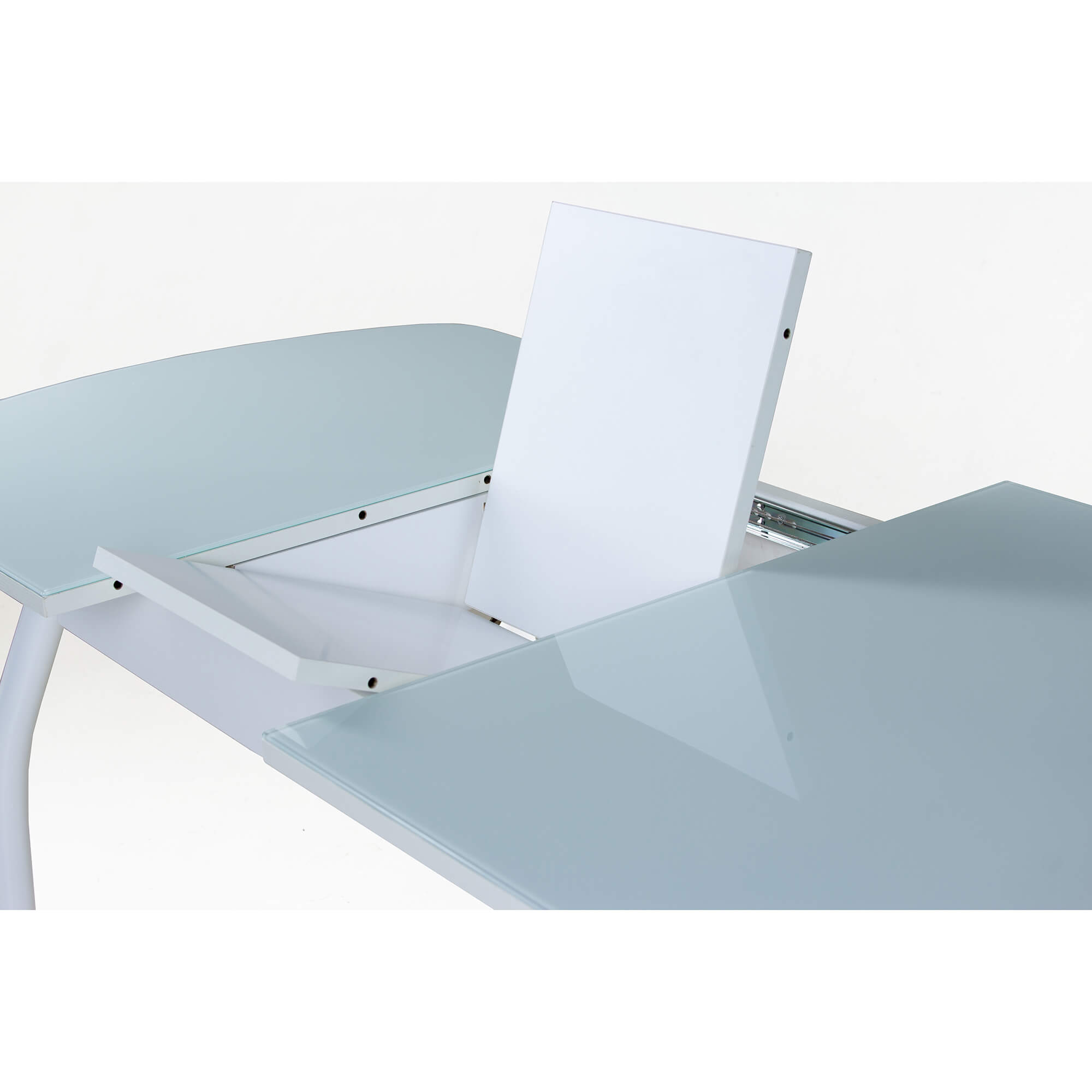 Стол раздвижной со столешницей с закругленными углами. Выполнен из ЛДСП 16 мм и прочного закаленного стекла толщиной 4 мм, окрашенного немецкими керамическими красками Ferro. Высококачественное стекло изготовлено со специальной безопасной фаской Safe face и декорировано кожзамом с фактурой крокодиловой кожи. Закругленные формы столешницы и ножек обеспечивают безопасность при эксплуатации.