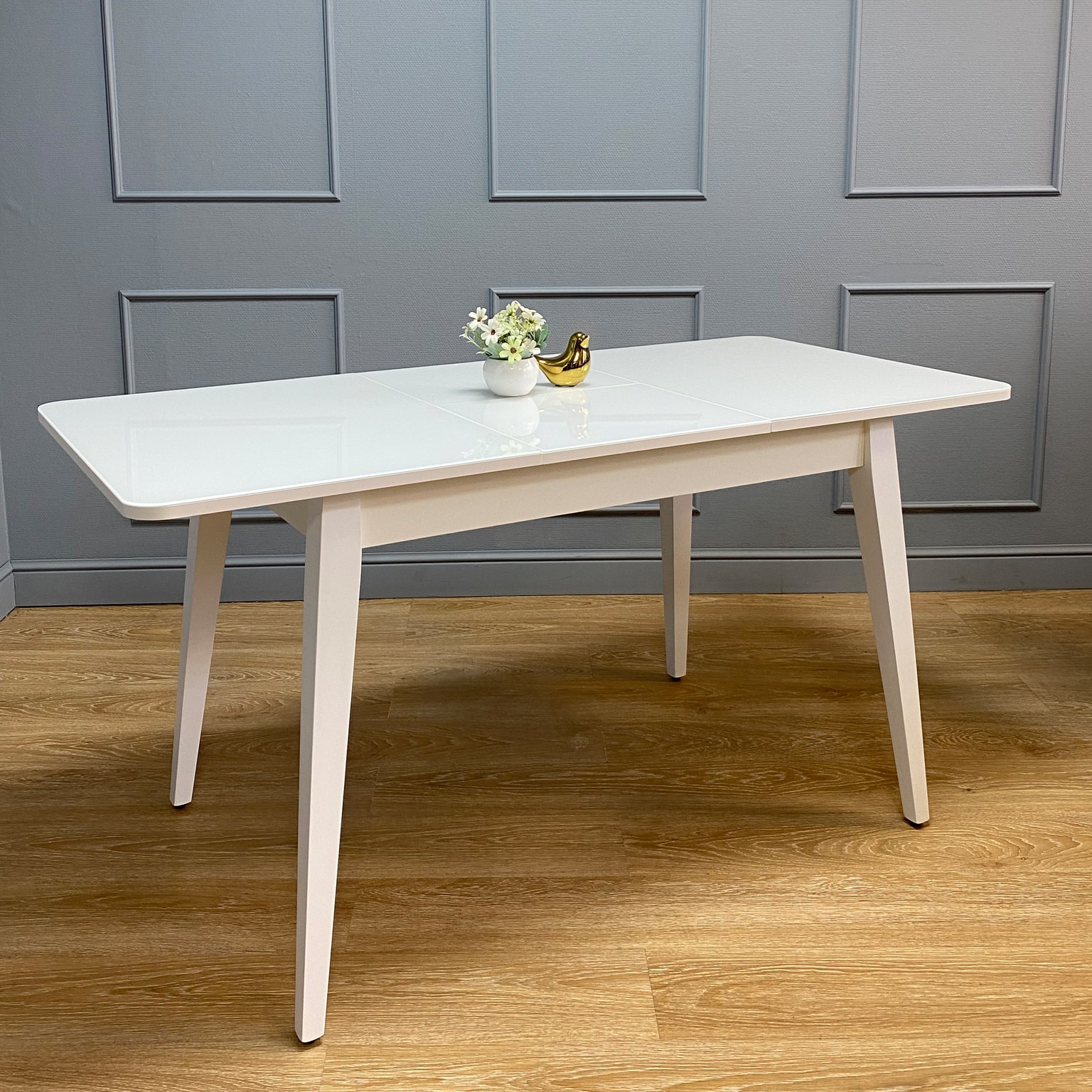 Стол обеденный Kenner 1100 М белый/стекло белое глянец