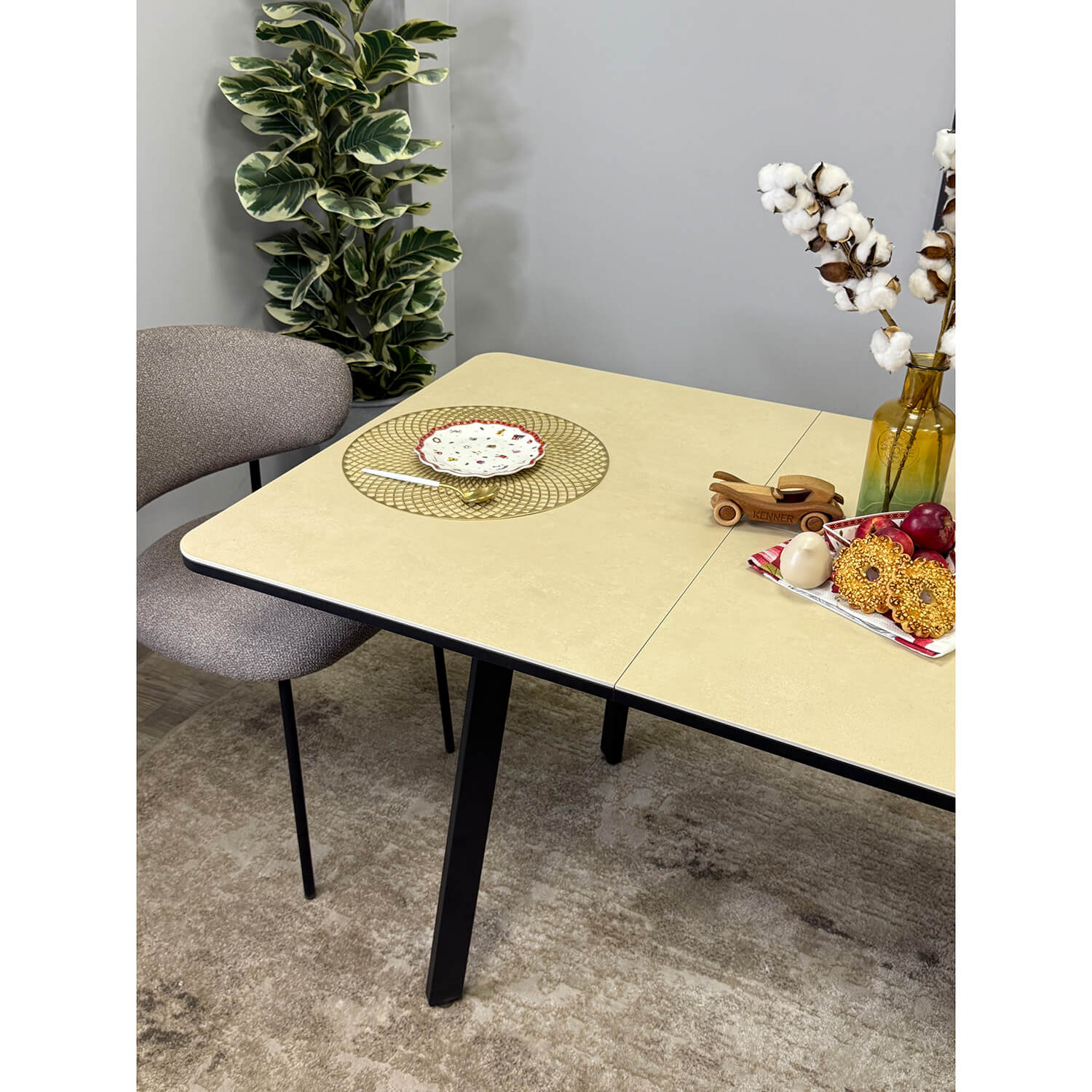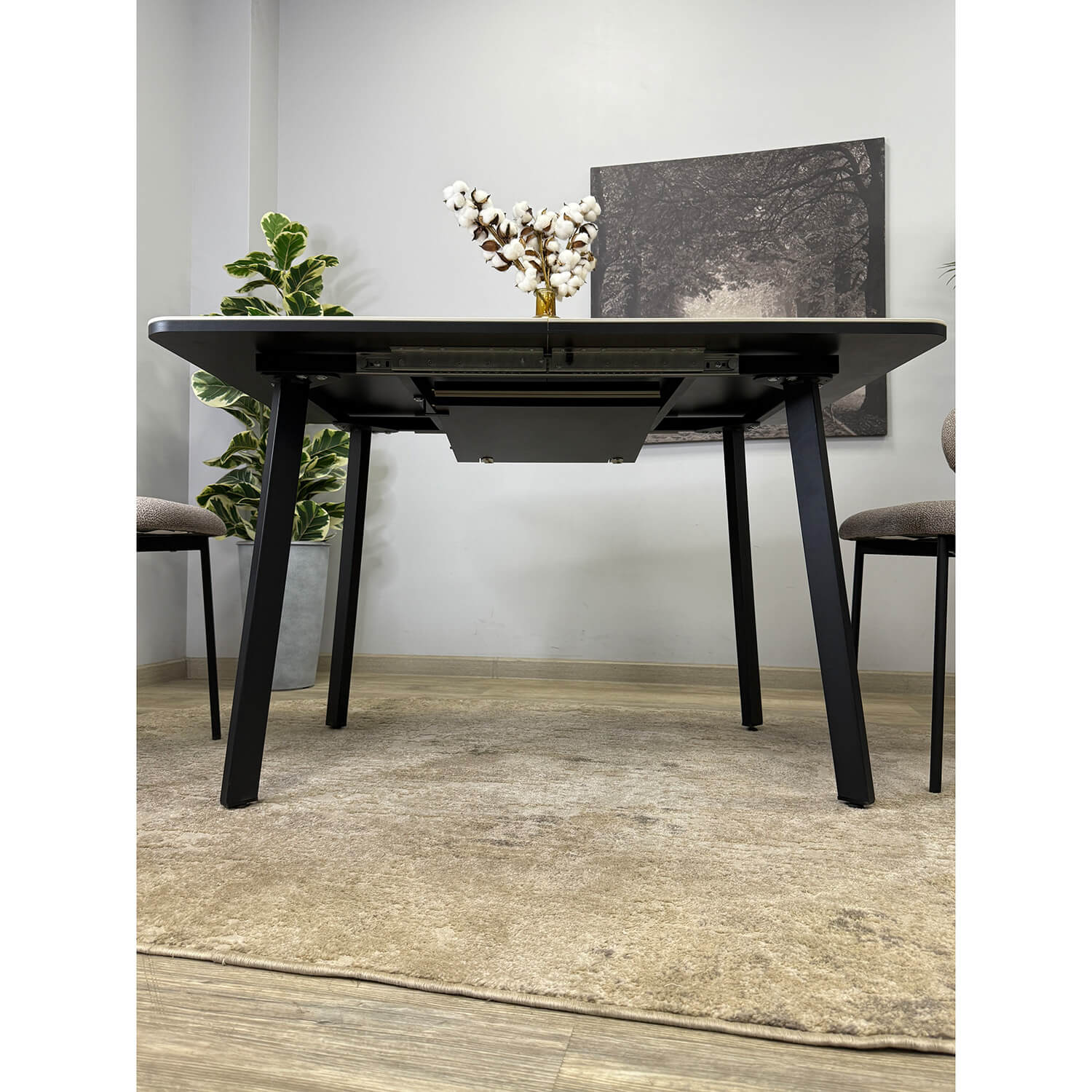 Стол с керамической столешницей и синхронным механизмом раскладки. Скругленные края для безопасности. Подстолье изготовлено из прочных материалов. Стильный дизайн и высокое качество сборки.