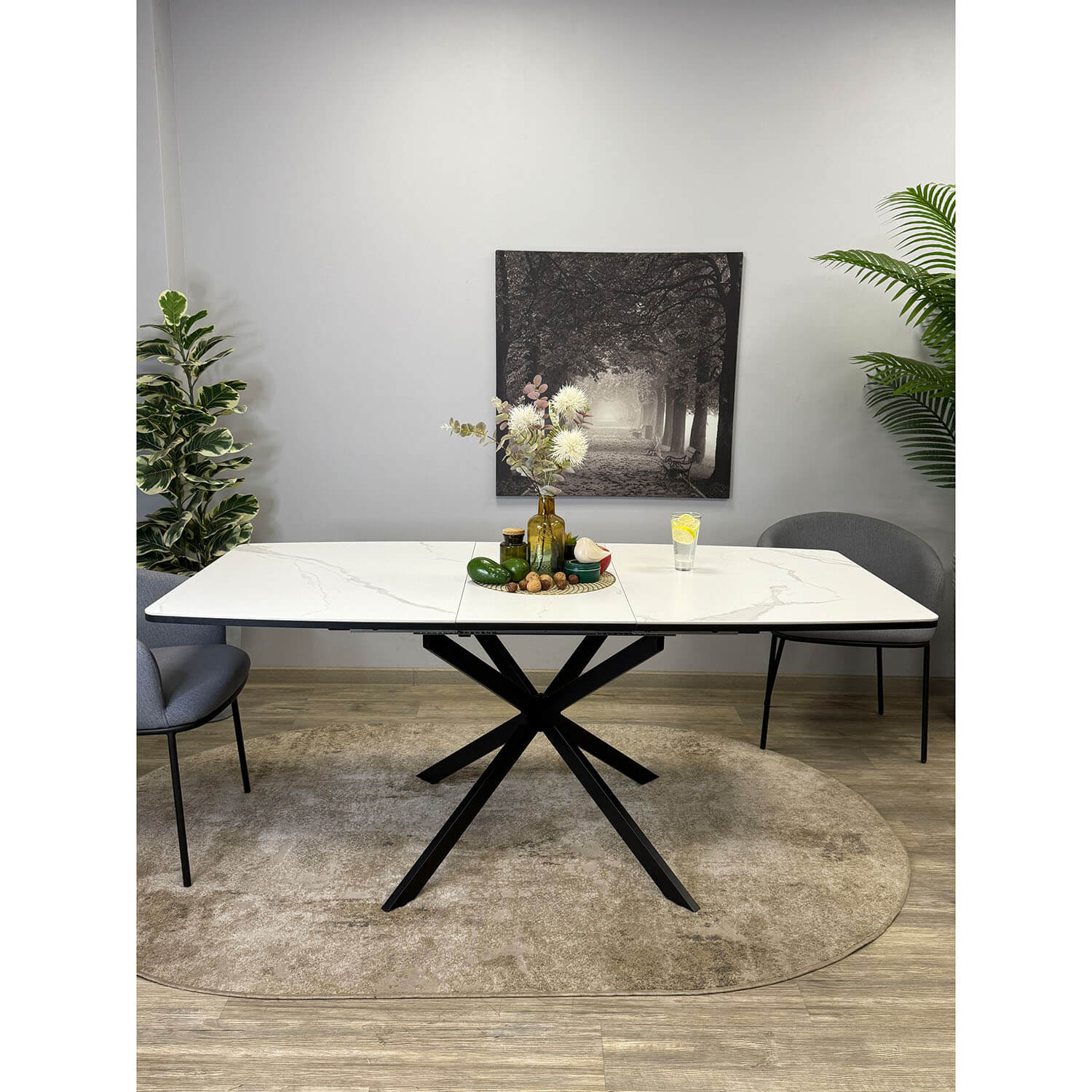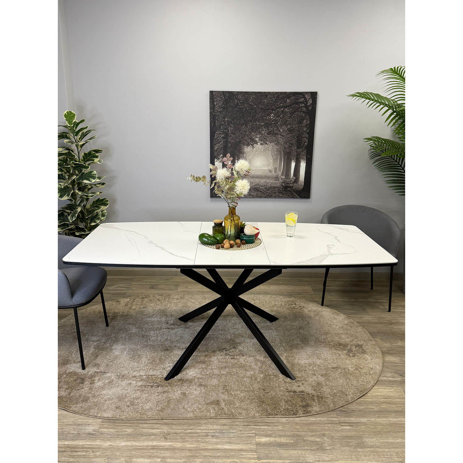 Cтильный прямоугольный стол с высококачественной керамической столешницей и надежными опорами.