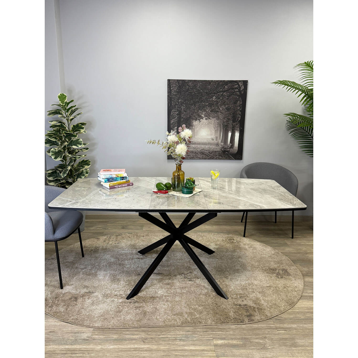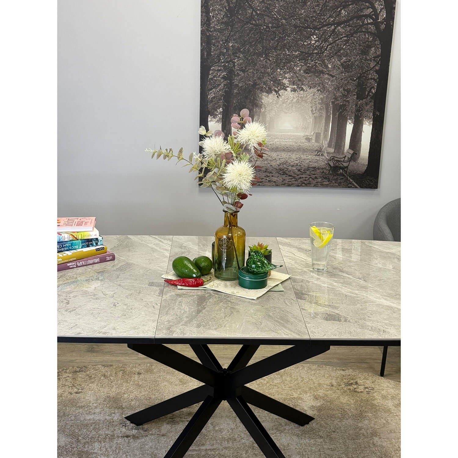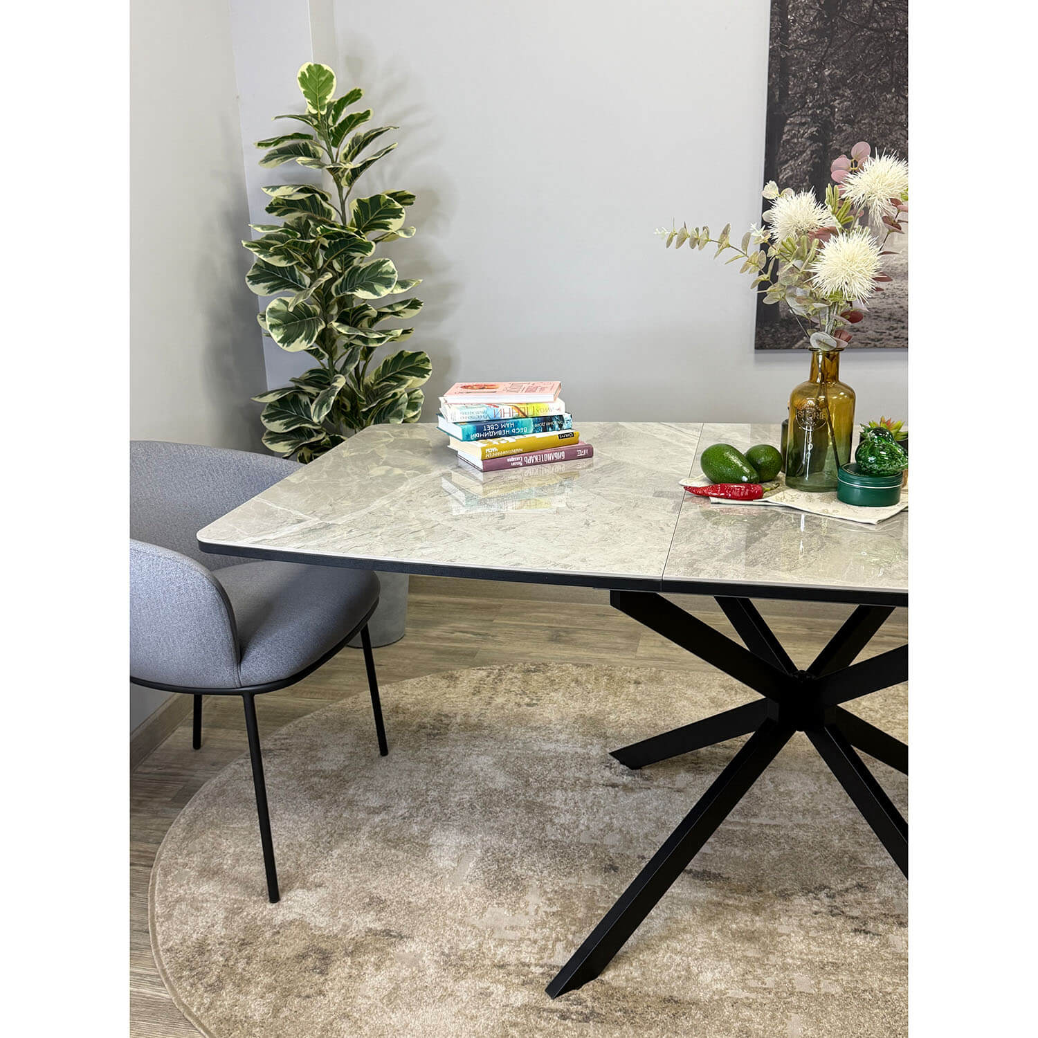 Cтильный прямоугольный стол с высококачественной керамической столешницей и надежными опорами.