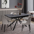 Габариты: 1300/1750х850х760 мм Материал: керамика на подложке из ЛДСП. Опоры: черный металл, покрытие - порошковая покраска, тонкий и надежный металлический профиль.