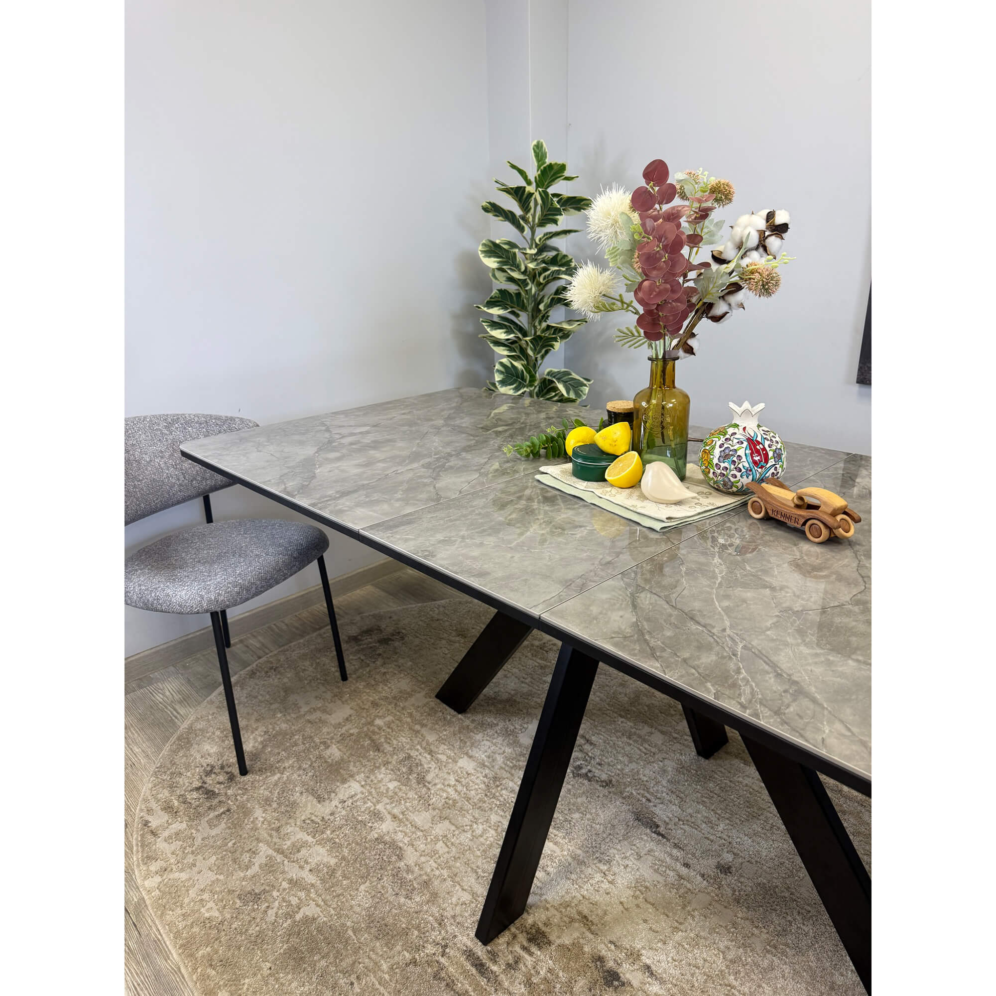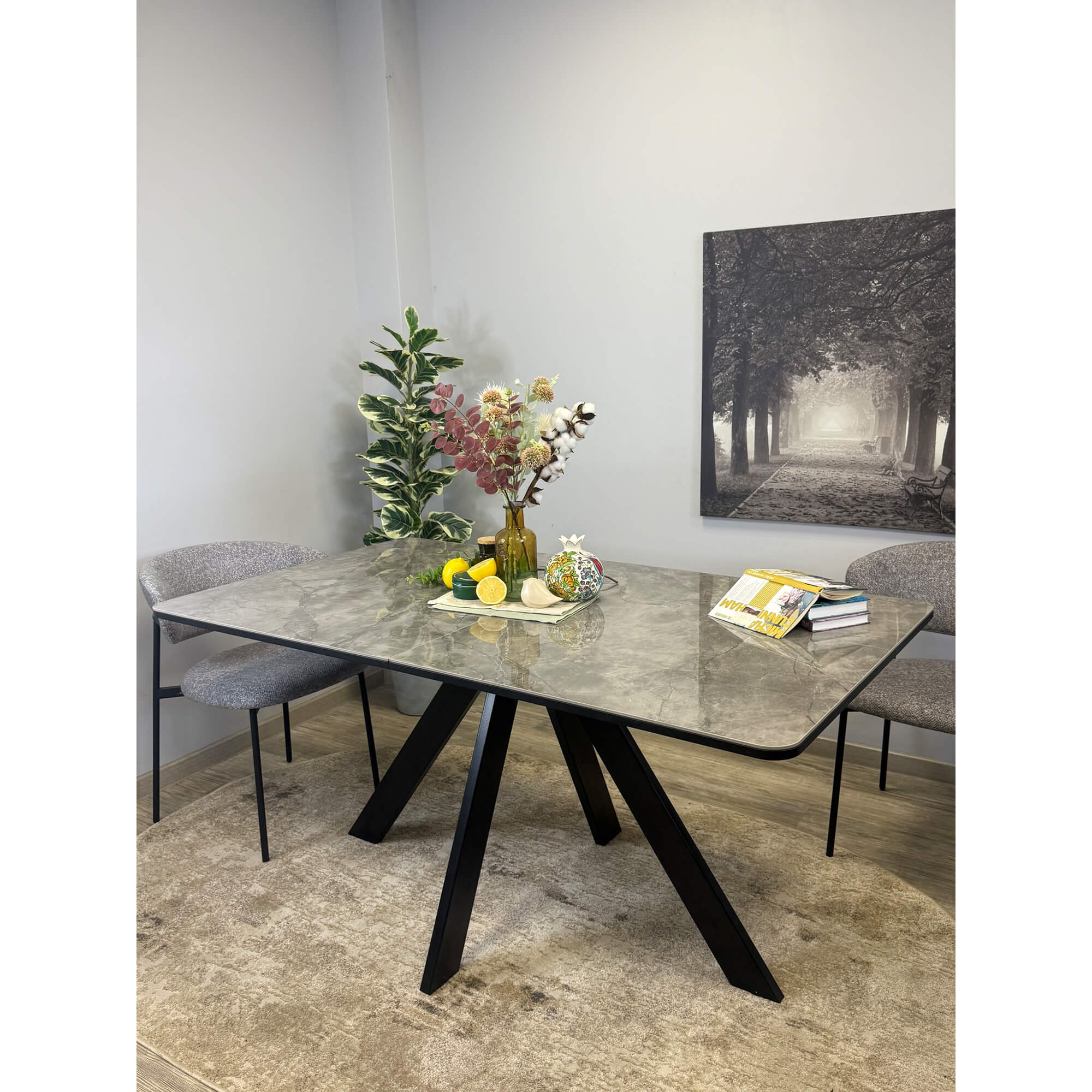 Стол обеденный Kenner DL1600 черный/керамика мрамор серый глянец