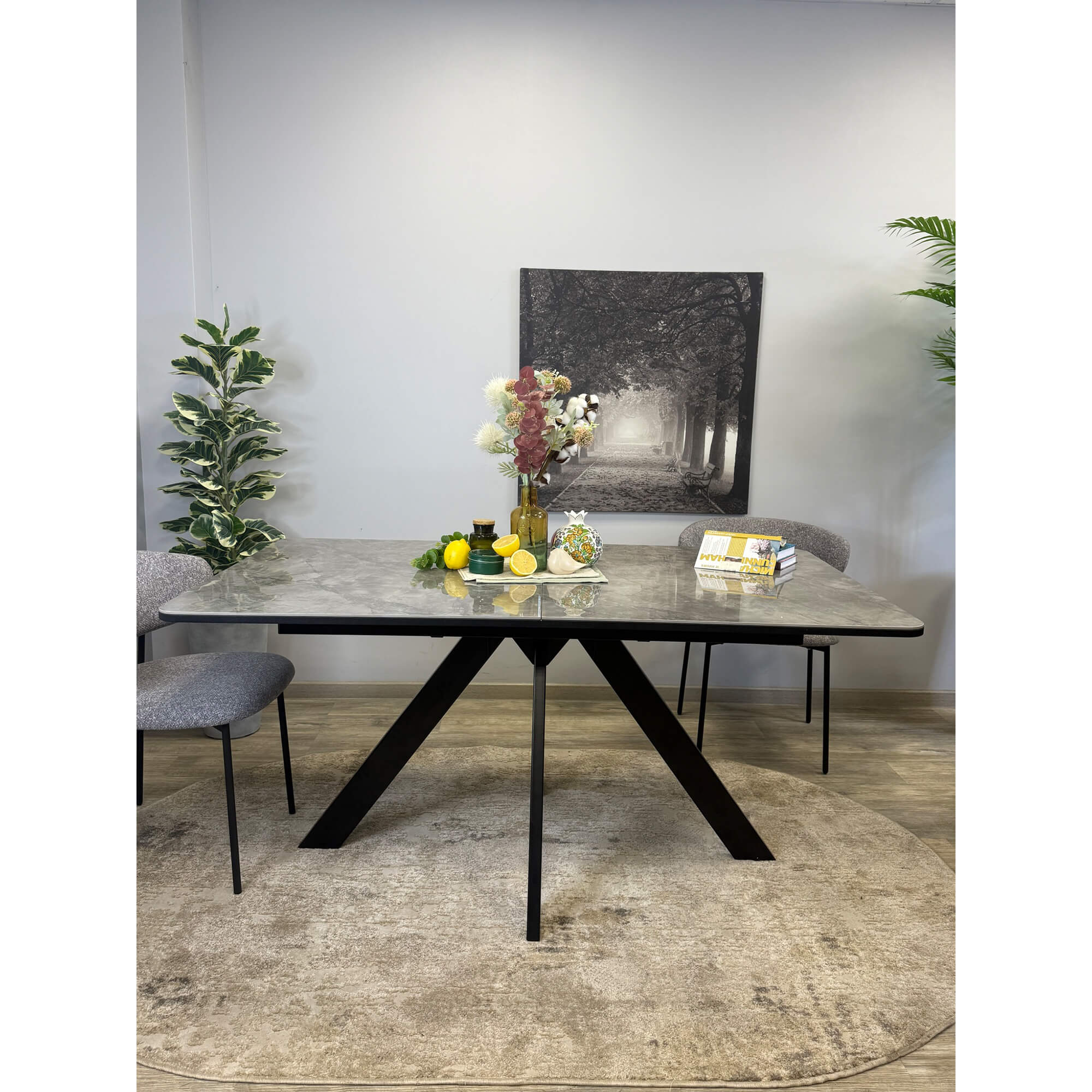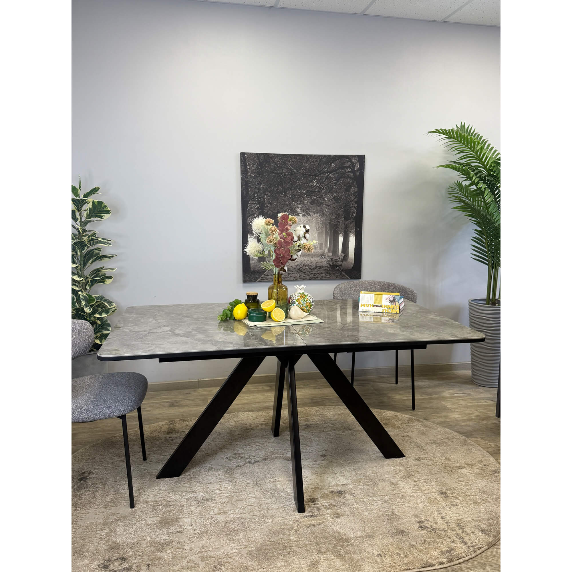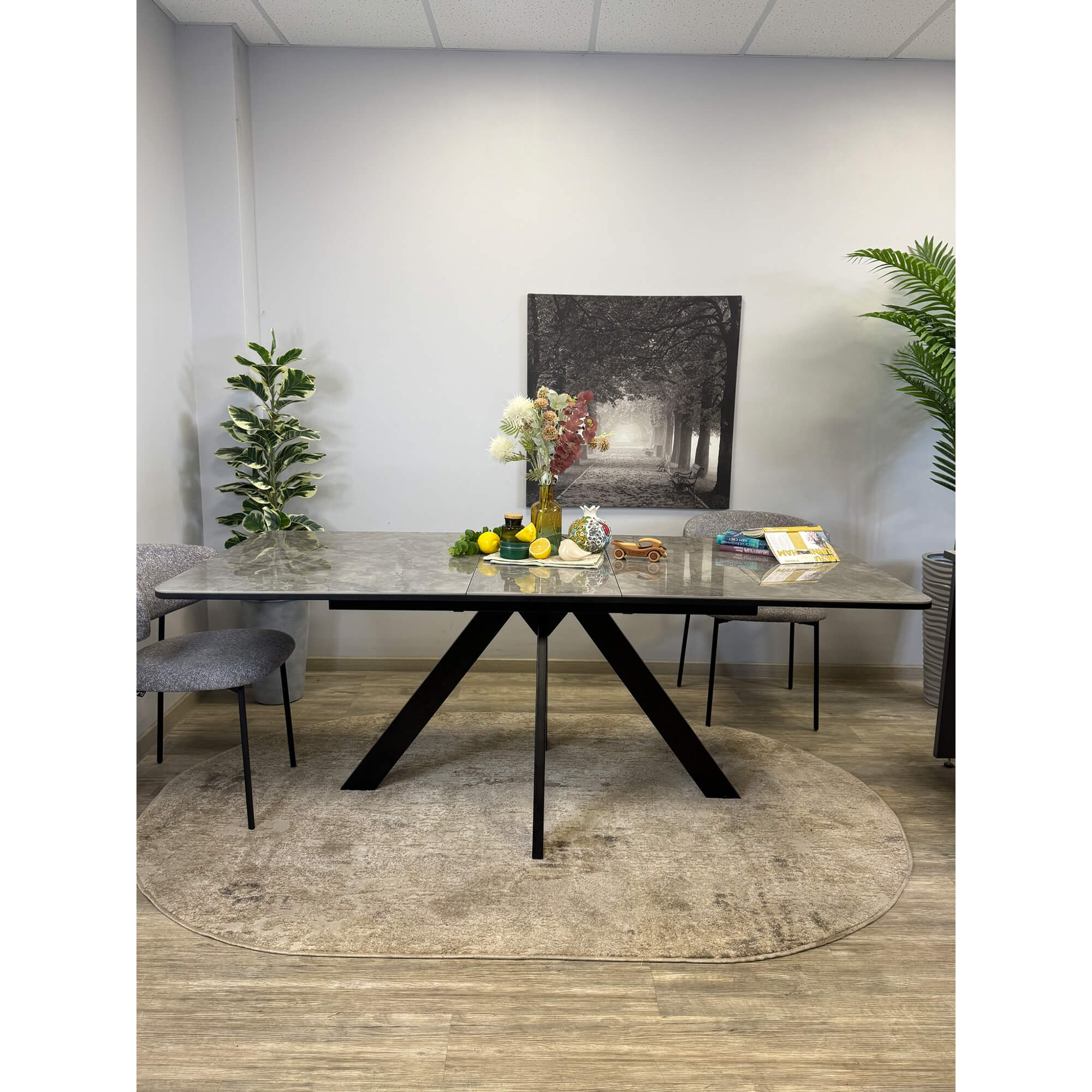 Стол обеденный Kenner LK1400 черный/керамика CARMEN LIGHT GRAY