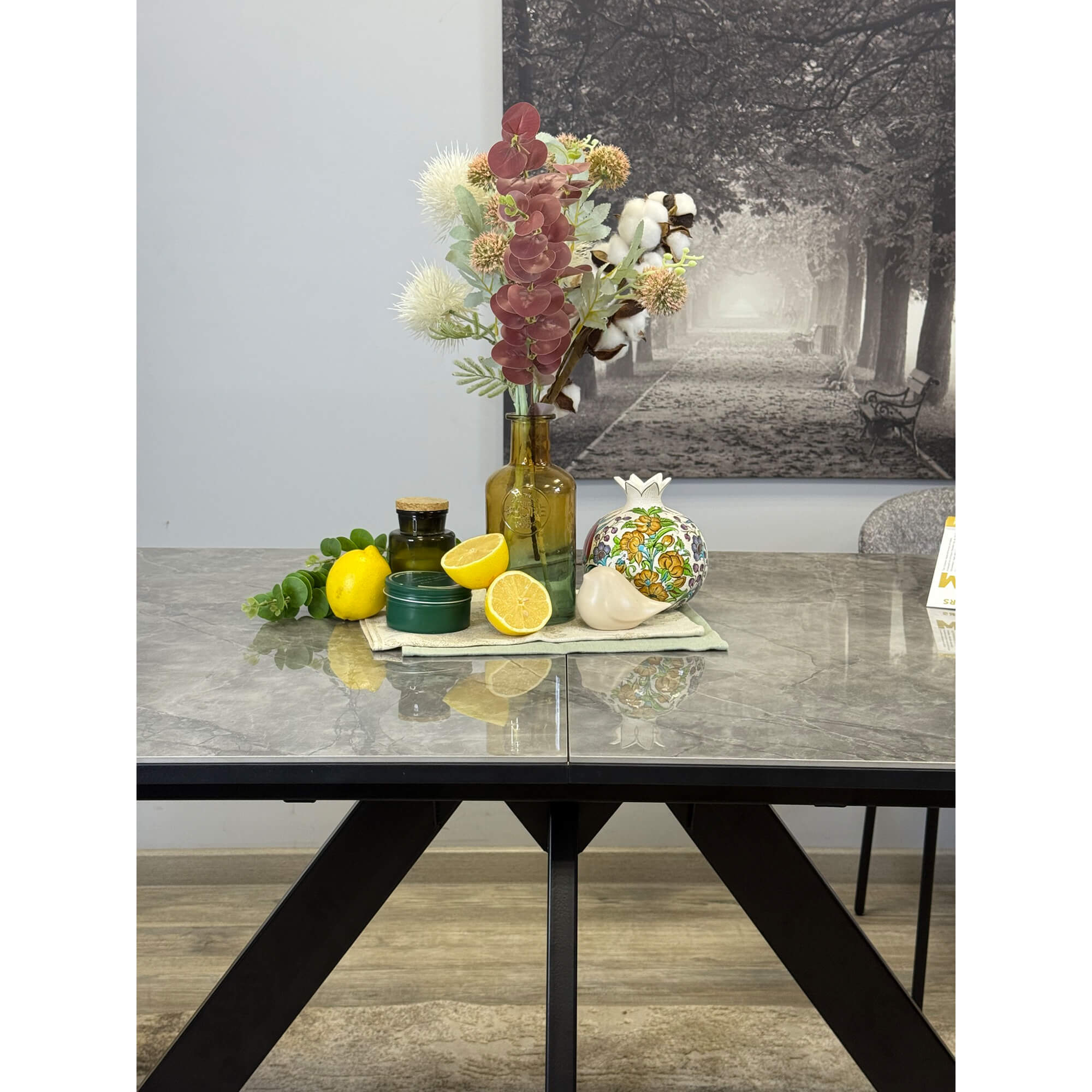 Стол обеденный Kenner DM1550 черный/керамика мрамор черный