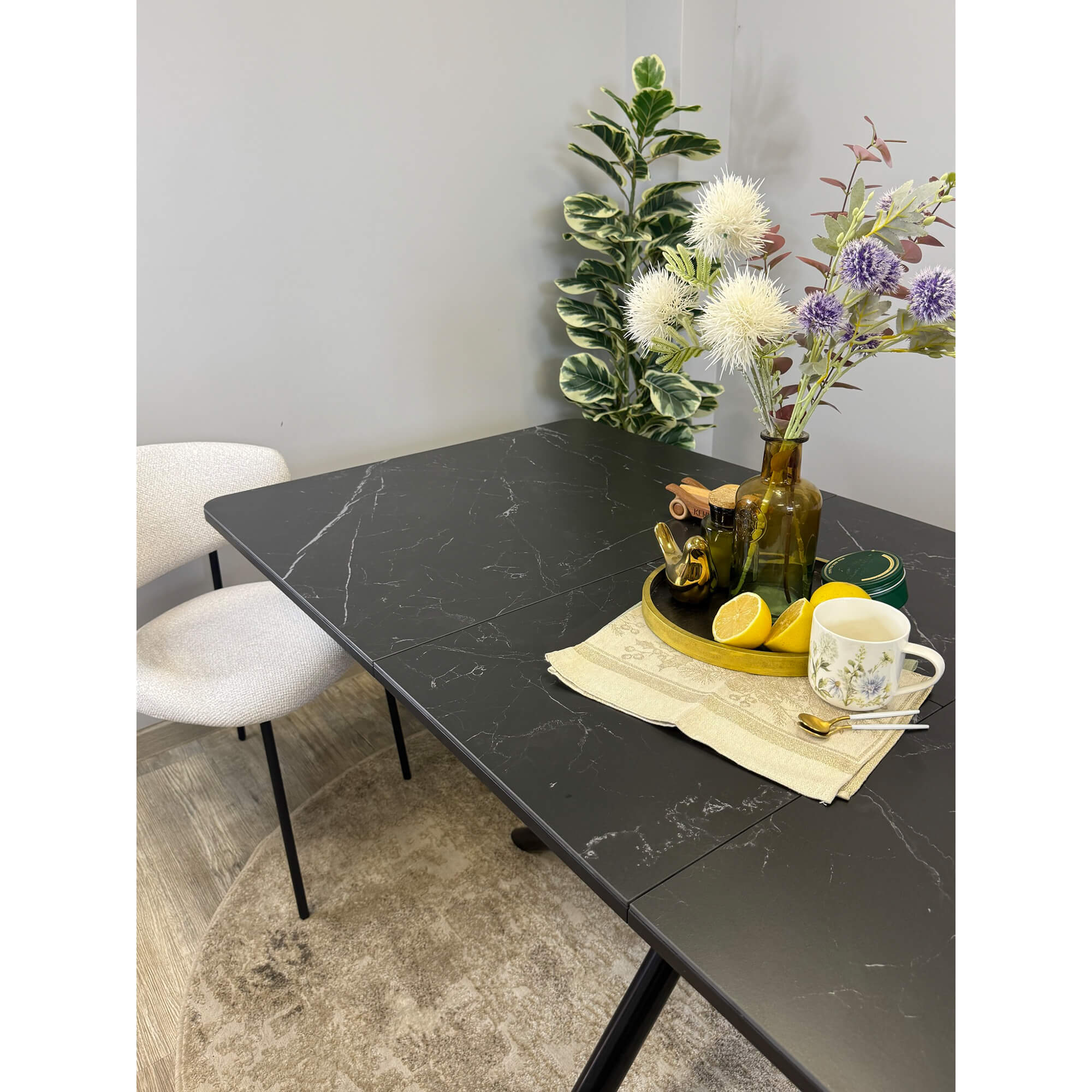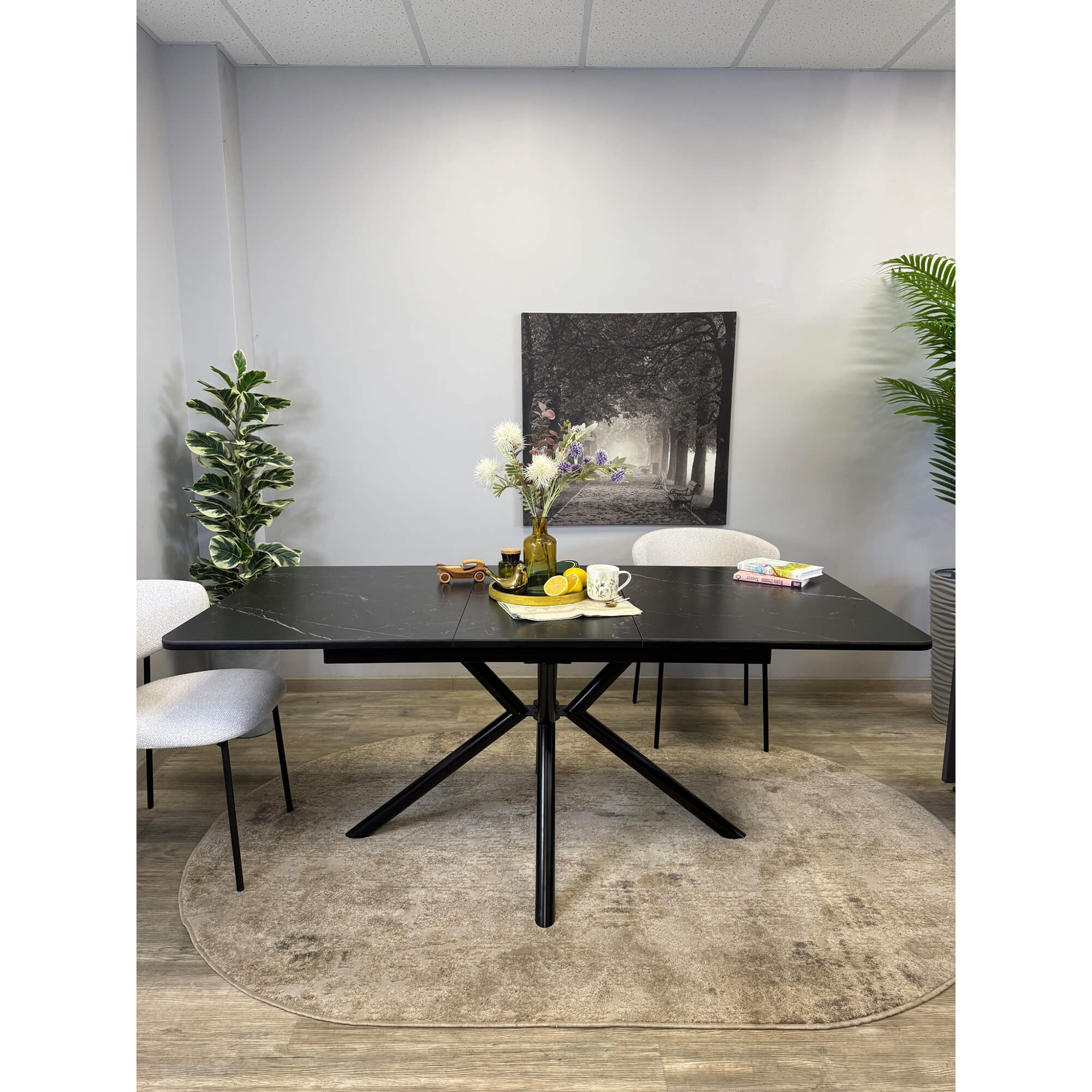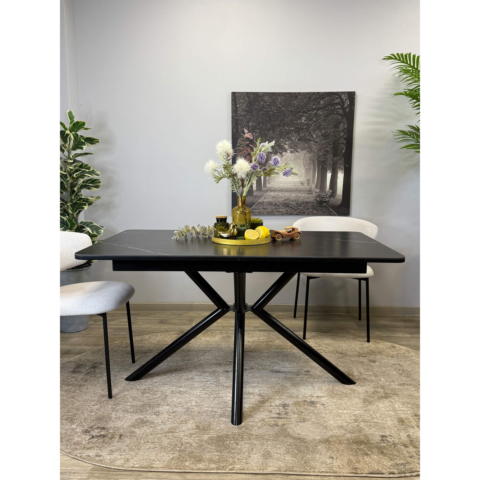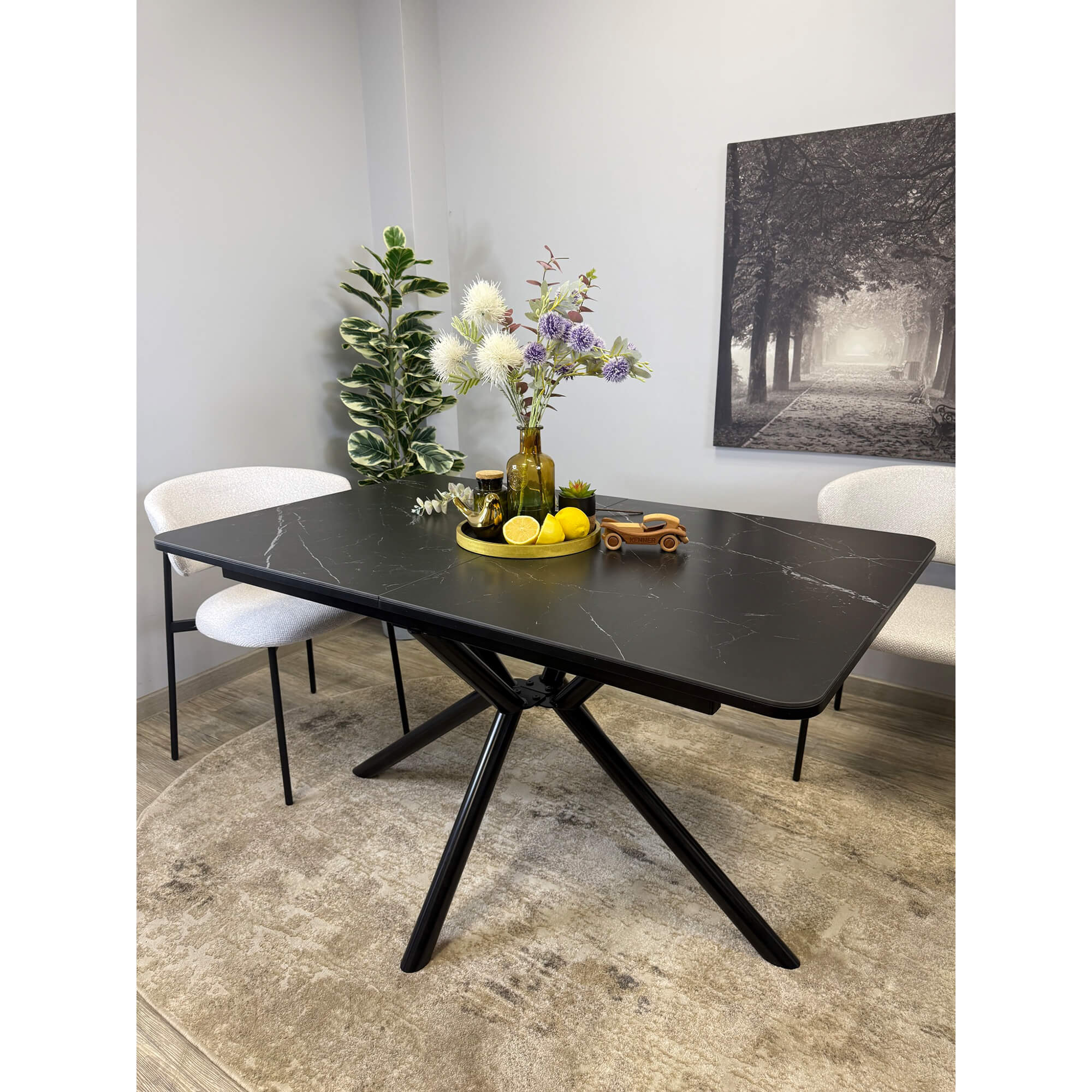 Стол обеденный Kenner DF1550 черный/керамика мрамор белый глянец