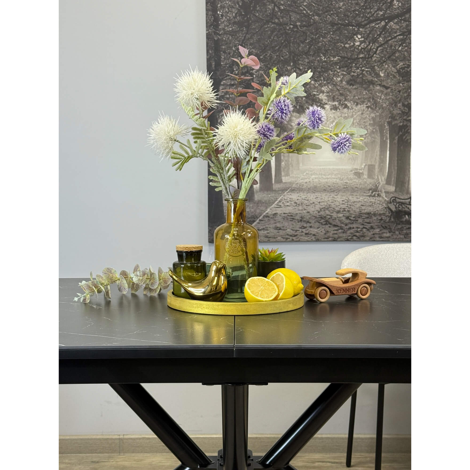 Стол обеденный Kenner DM1400 черный/керамика мрамор черный
