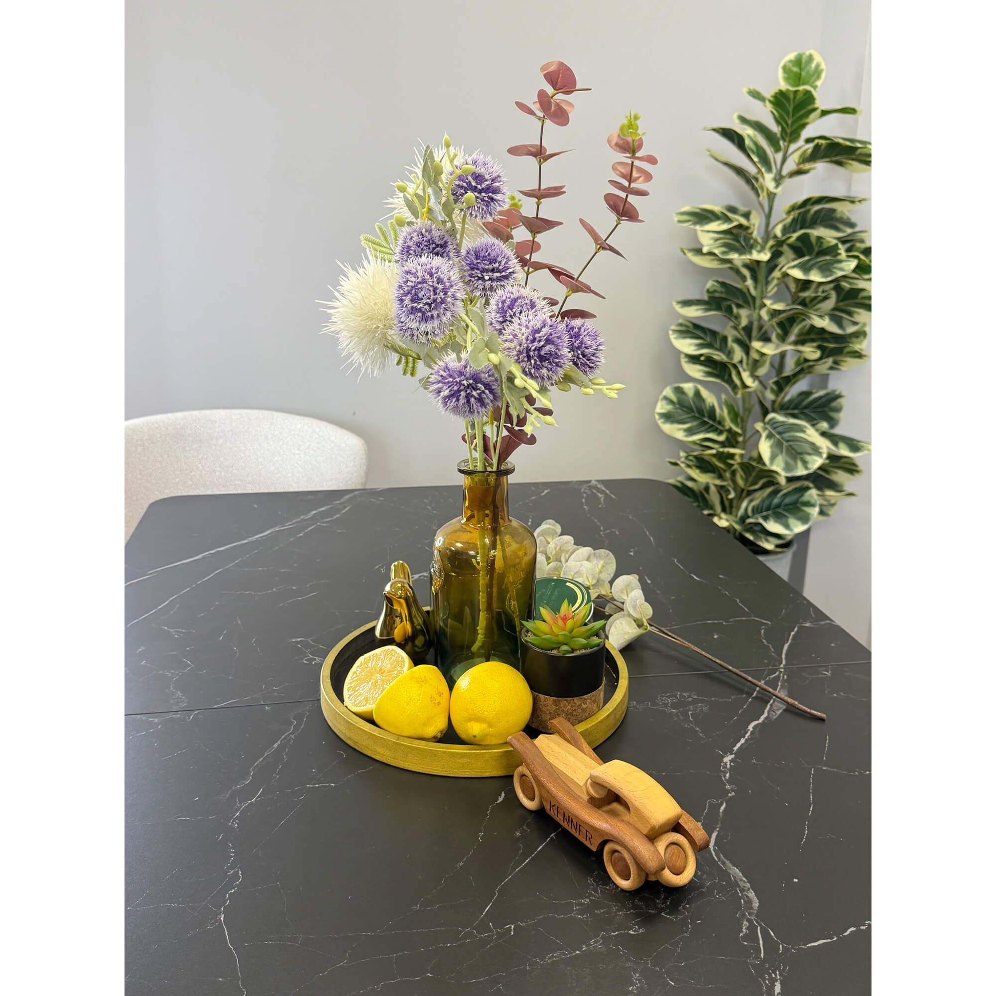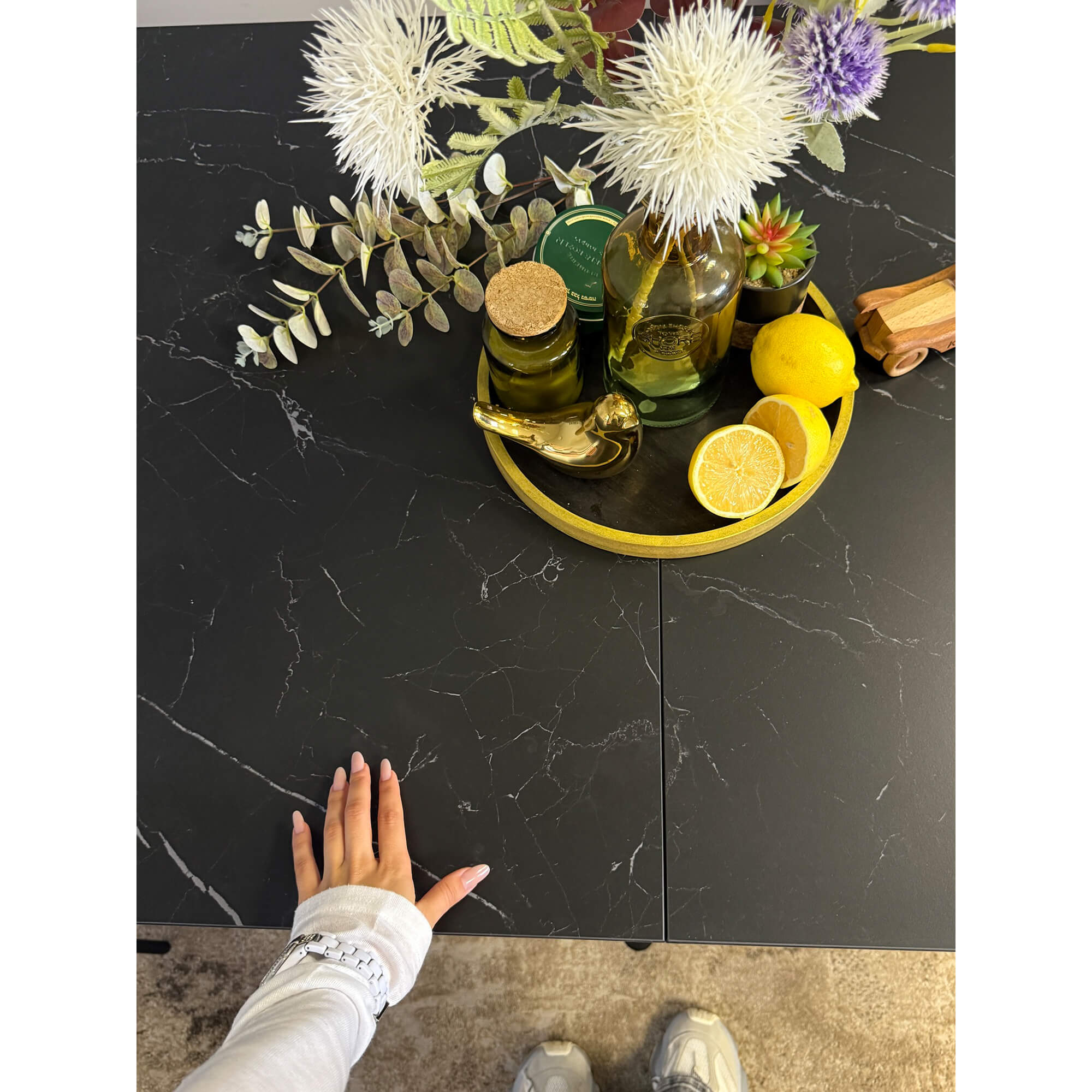 Стол обеденный Kenner DM1400 черный/керамика мрамор золотой